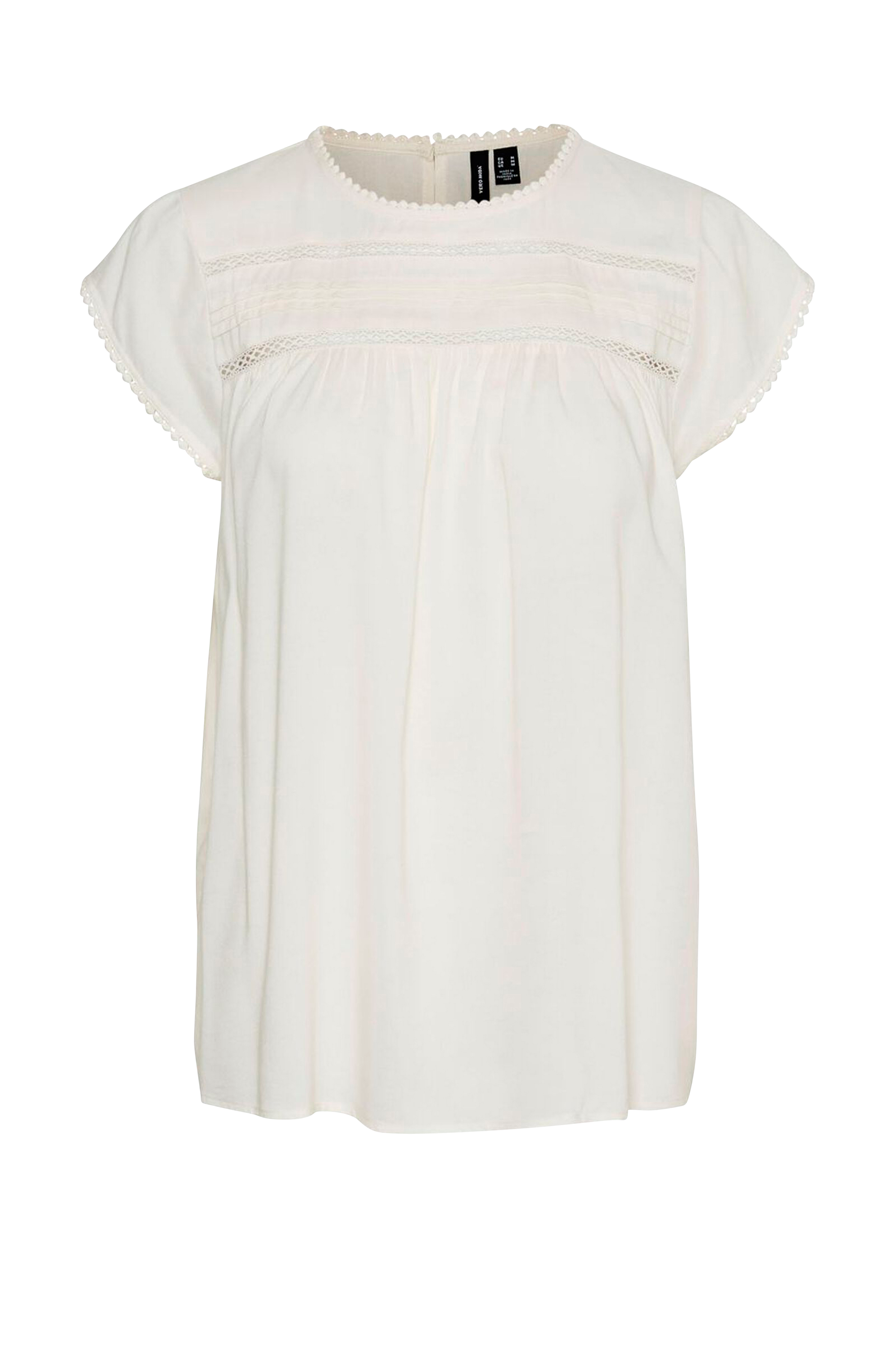 • Rund halsringning med dekorativ kant • Skjær med knapp i nakken • Kort erme med dekorativ kant • Rynke ved bysten • Produktet inneholder viskose fra Livaeco by Birla Cellulose™, en kunstig cellulosefiber av tremasse som kommer fra kontrollert og ansvarlig skogbruk.
