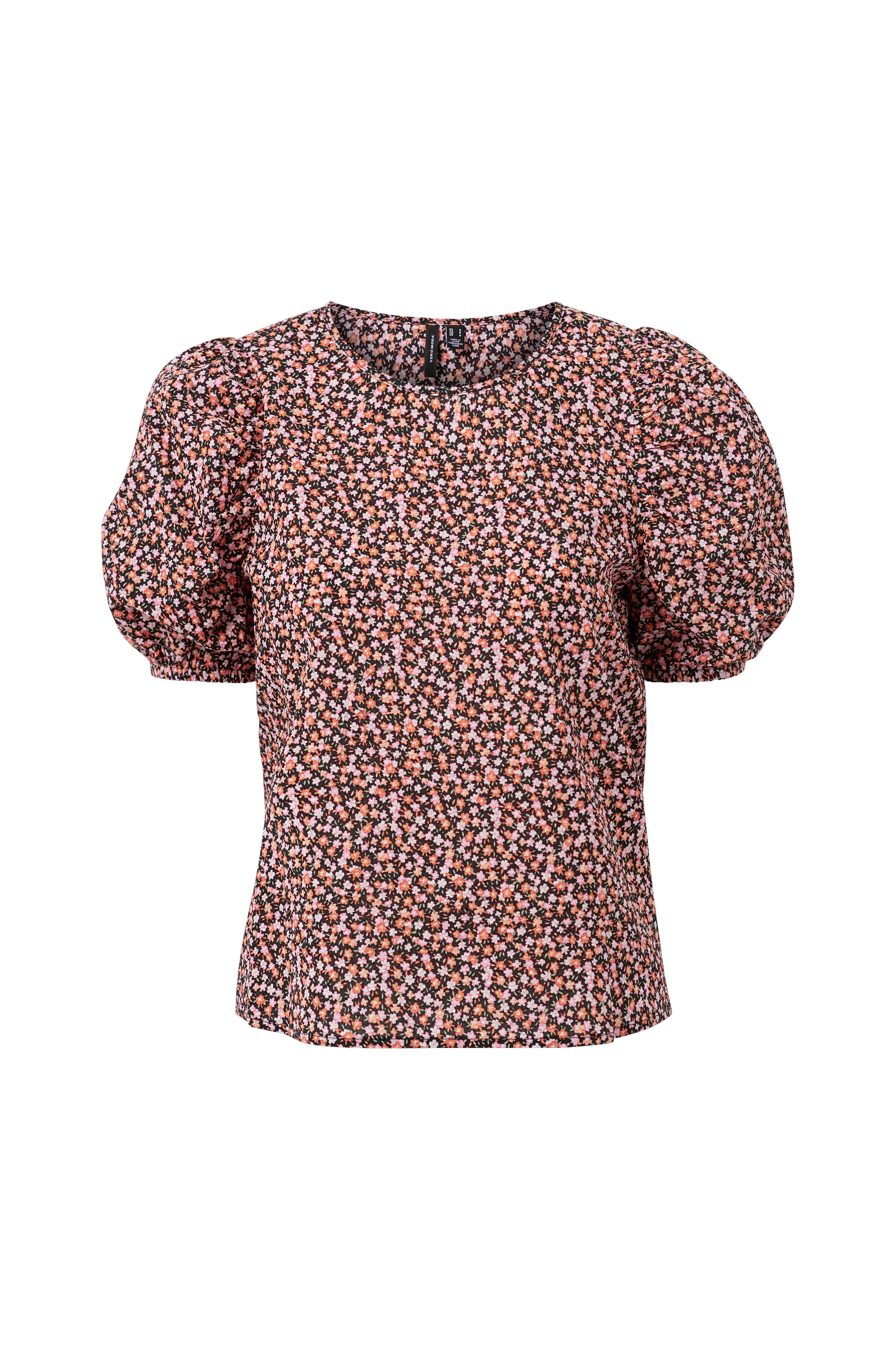 Bluse vmFlora 2/4 Top fra Vero Moda i A-linjemodell med ledig passform og halvlange puffermer med elastiske ermekanter. Fremstilt i vevd kvalitet med kreppet struktur.