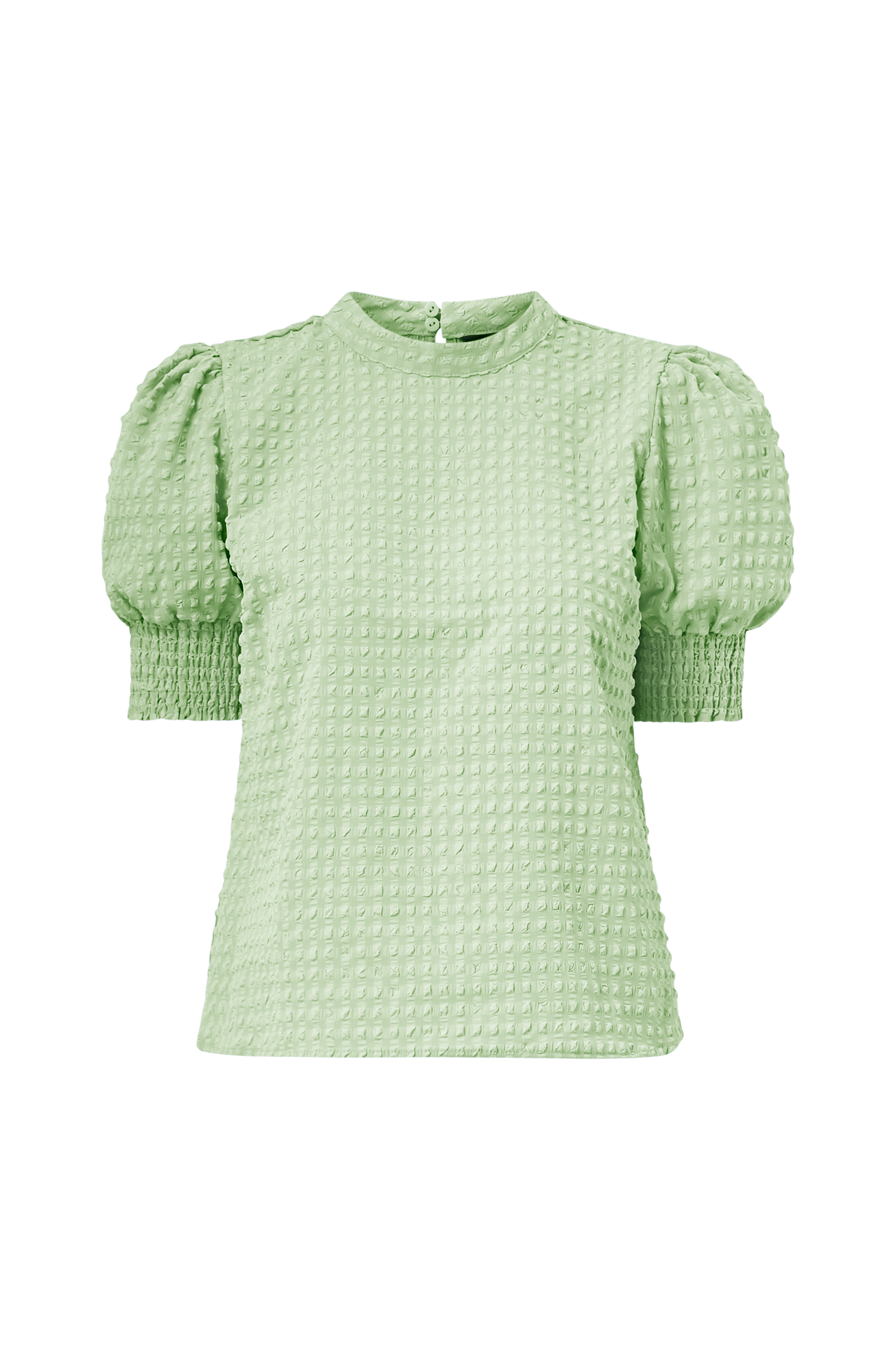 • Rett modell• Rund hals• Kort bobleerme med vaffelsøm i ermeslutten