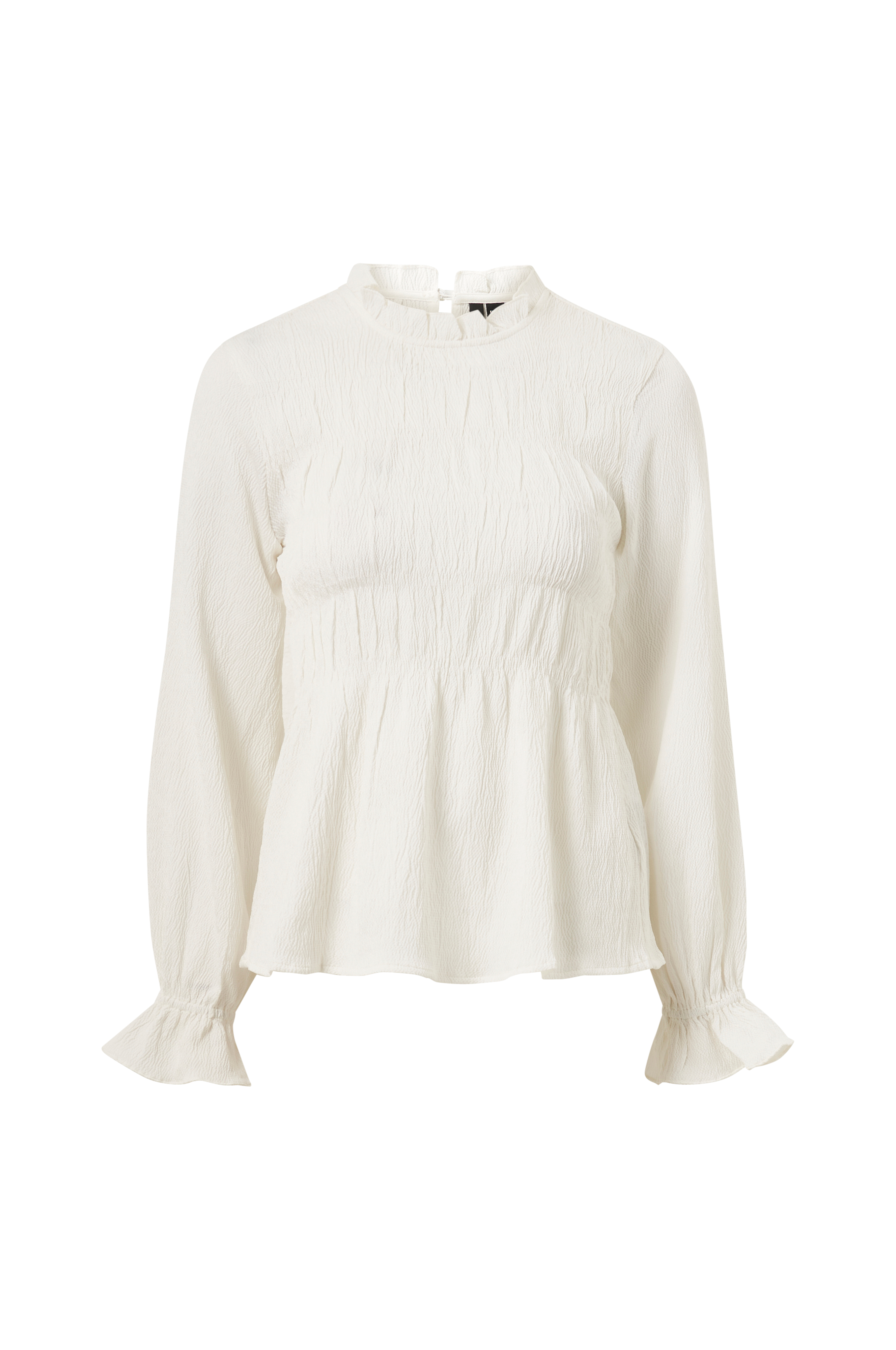• Ettersittende passform• Vaffelsøm på toppen• Volang i halsen• Lange ermer med volang i ermeslutten• Ventilasjon med knapp i nakken• Kvalitet med lysskinn og strukturmønster