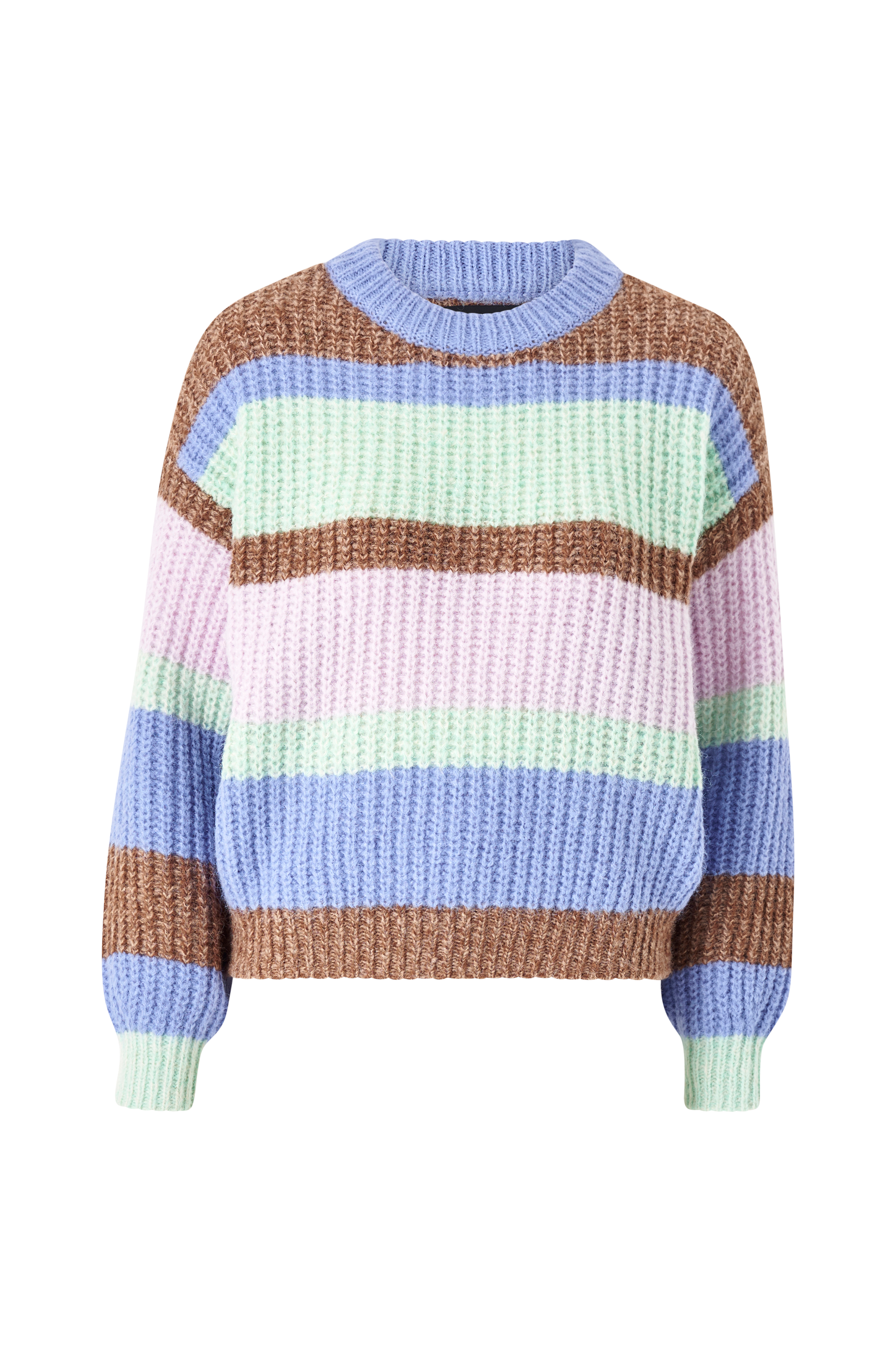 • Strikket, blokkfarget genser• Grovstrikket kvalitet• Utringede skuldre• Produktet inneholder gjenvunnet materiale som er brukt for å redusere mengden avfall, samtidig som det ikke er brukt nye ressurser.