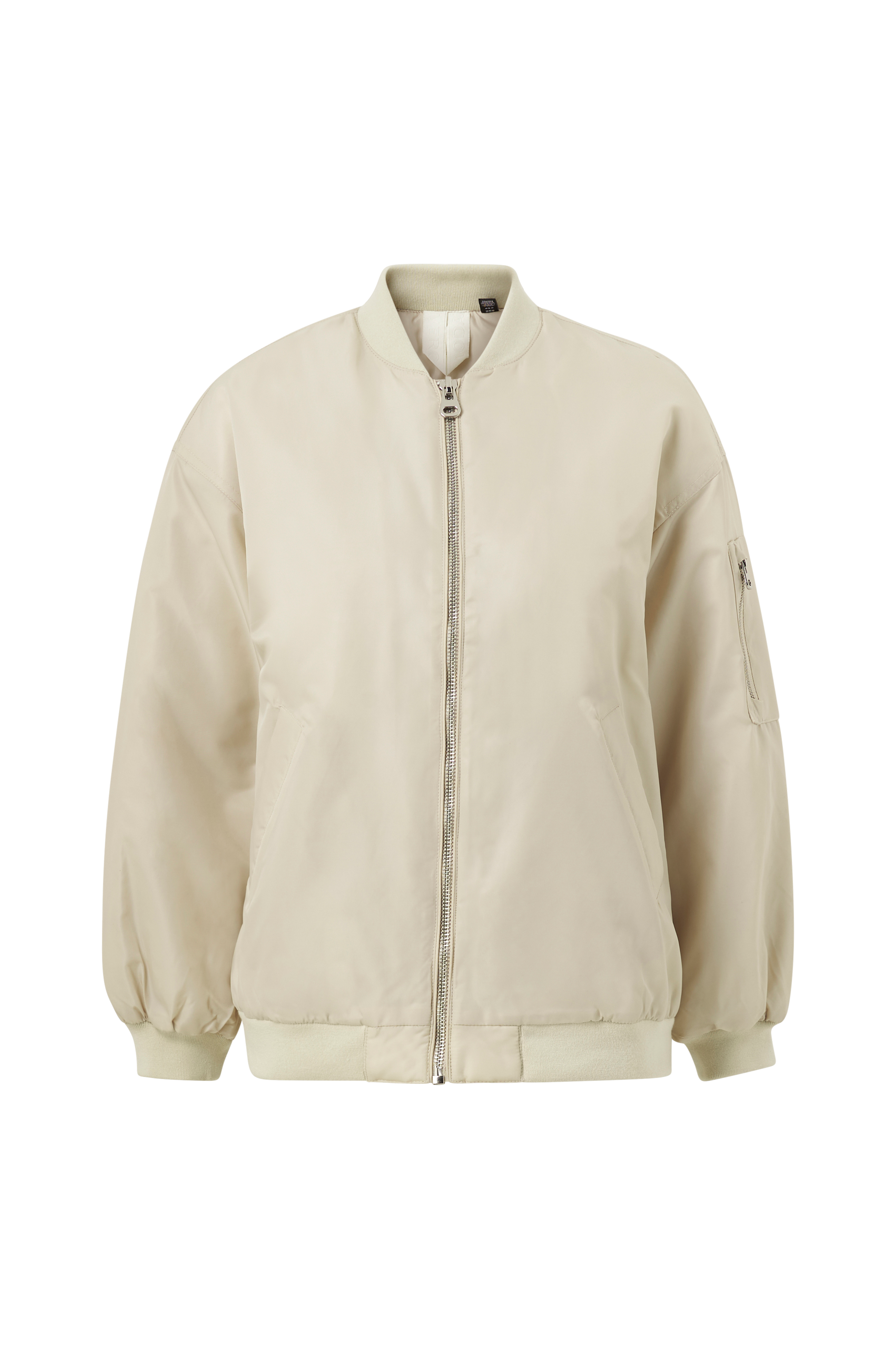 • Polstre bomberjakke • Oversizemodell • Ribbet krage • Glidelås • To lommer med trykknappslukning • En ermelomme med glidelås • Ribbet mansjetter i ermeslutten og på bunnen • Lengde: 70 cm i størrelse S • Produktet inneholder gjenvunnet materiale som er brukt for å redusere mengden avfall, samtidig som det ikke er brukt nye ressurser.