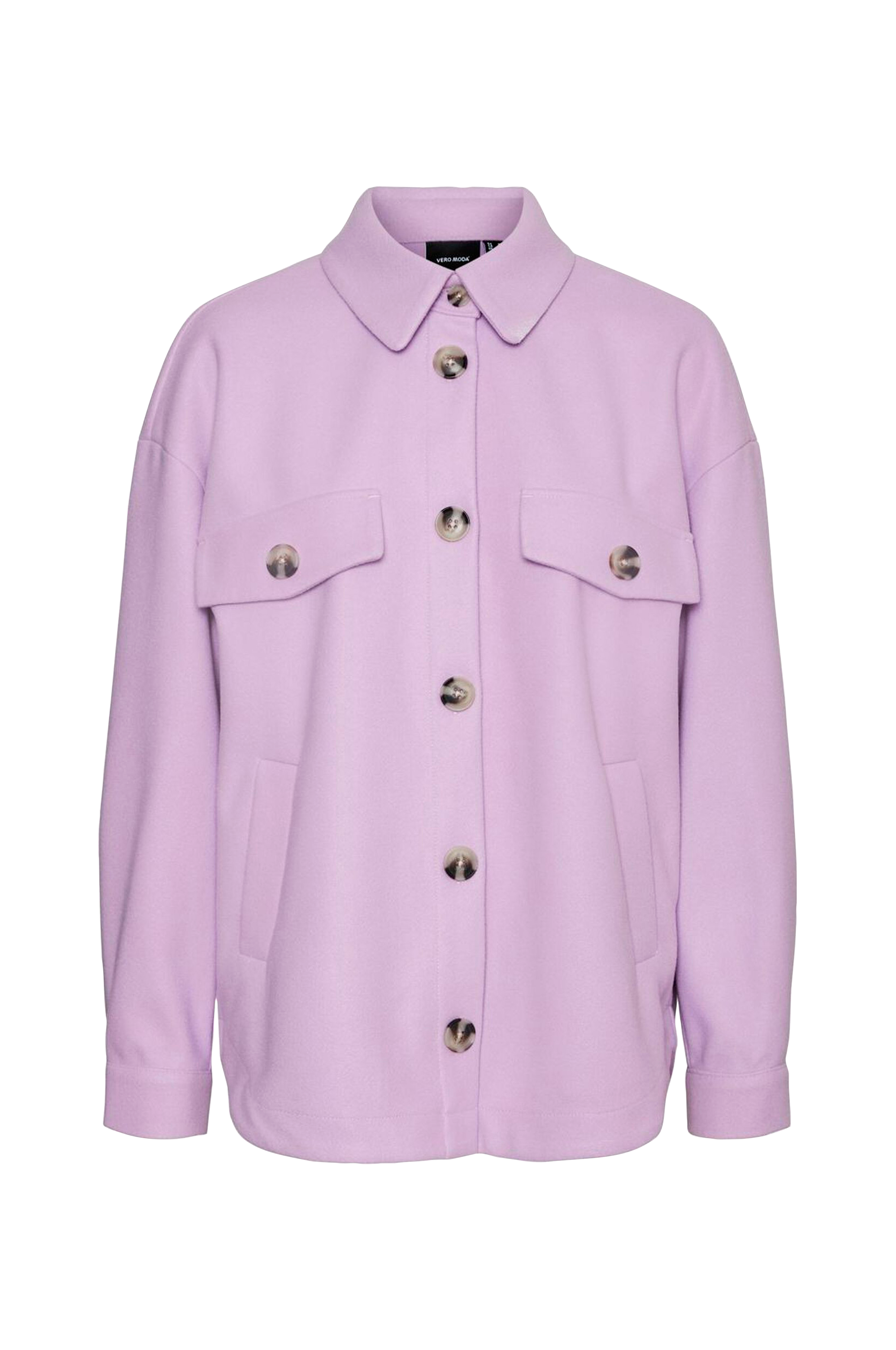 Jakke i myk, tovet kvalitet av gjenvunnet polyester. Knapper og lommer foran, dekorklaff på brystet og lave skuldersømmer. Lengde ca. 68 cm i str S.