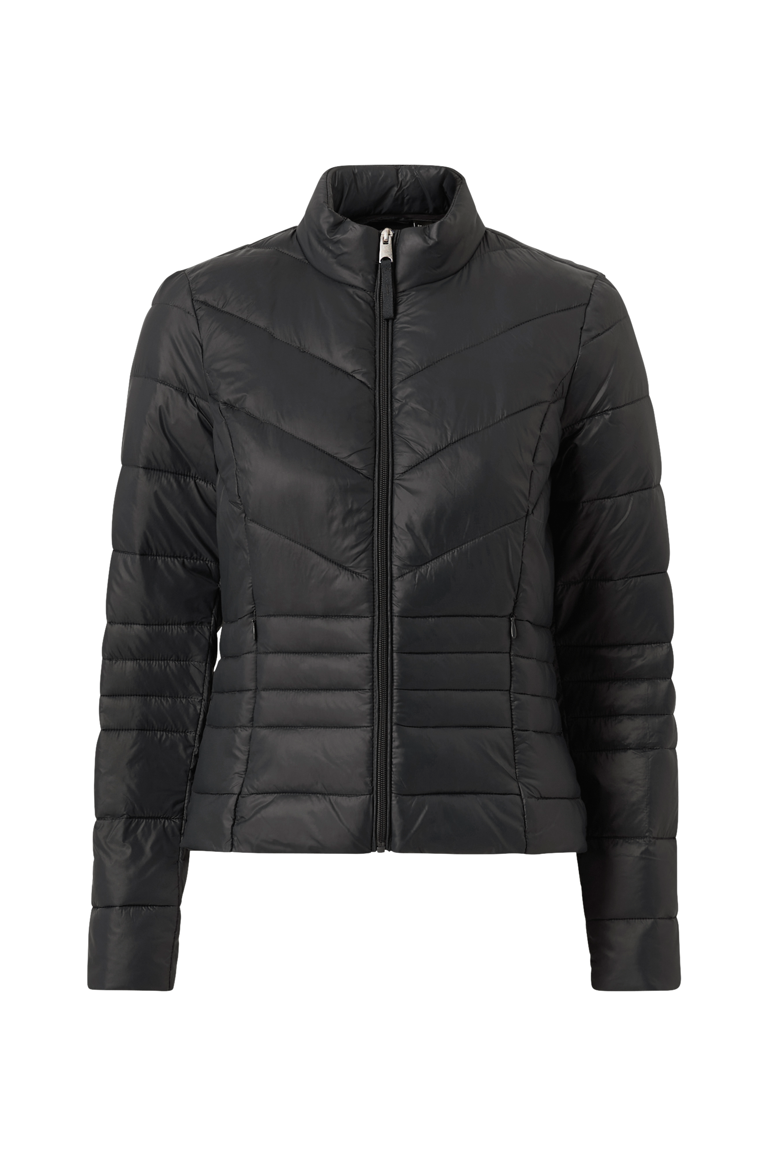 Quiltet jakke i lettvektsmodell med tynn vattering. Glidelås og to glidelåslommer foran. Lengde ca. 57 cm i str. S.