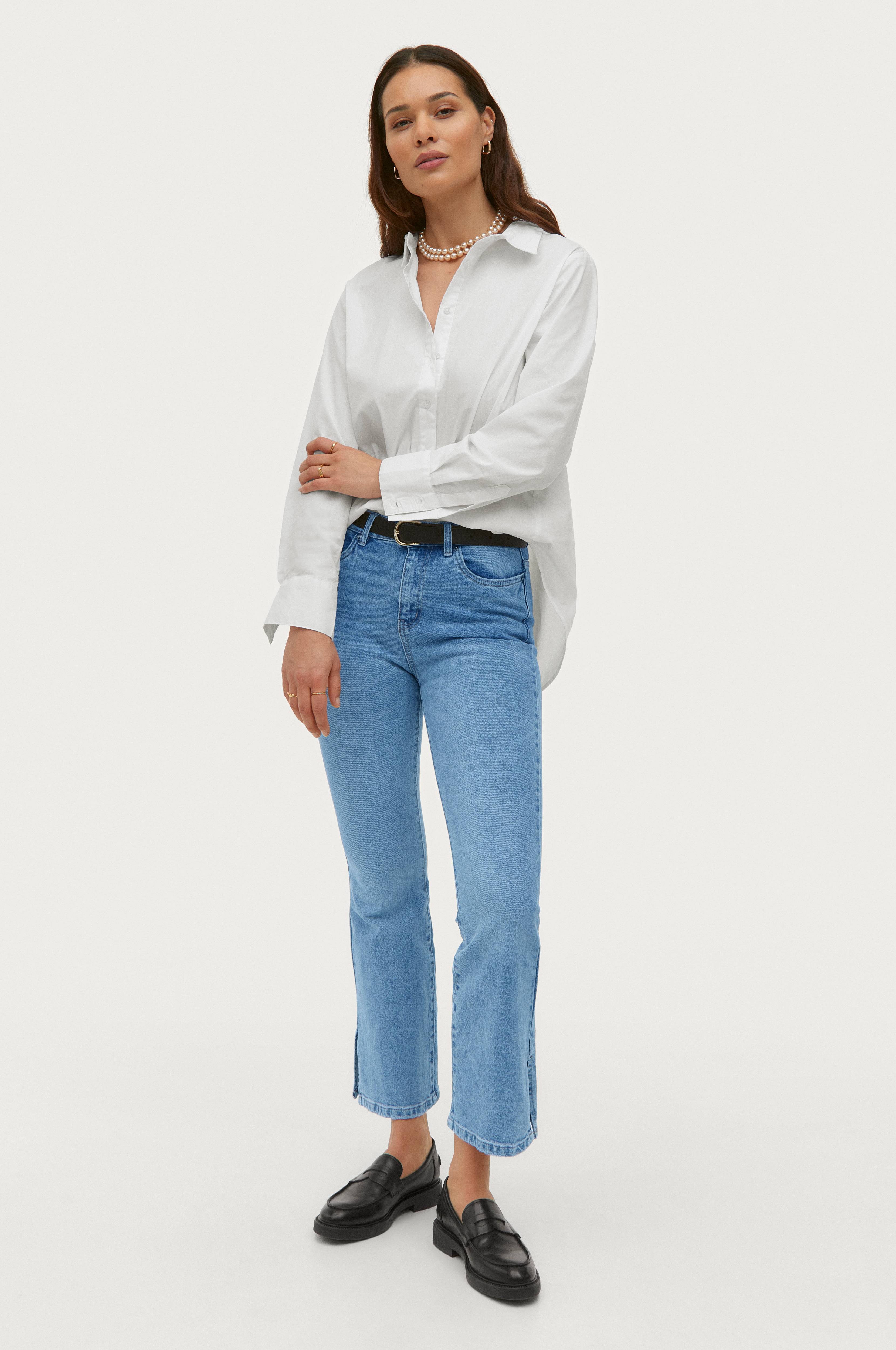 • Høy midje• Smal passform• Utsvingte benender• Femlommemodell• Stretch-denim• Lynlås