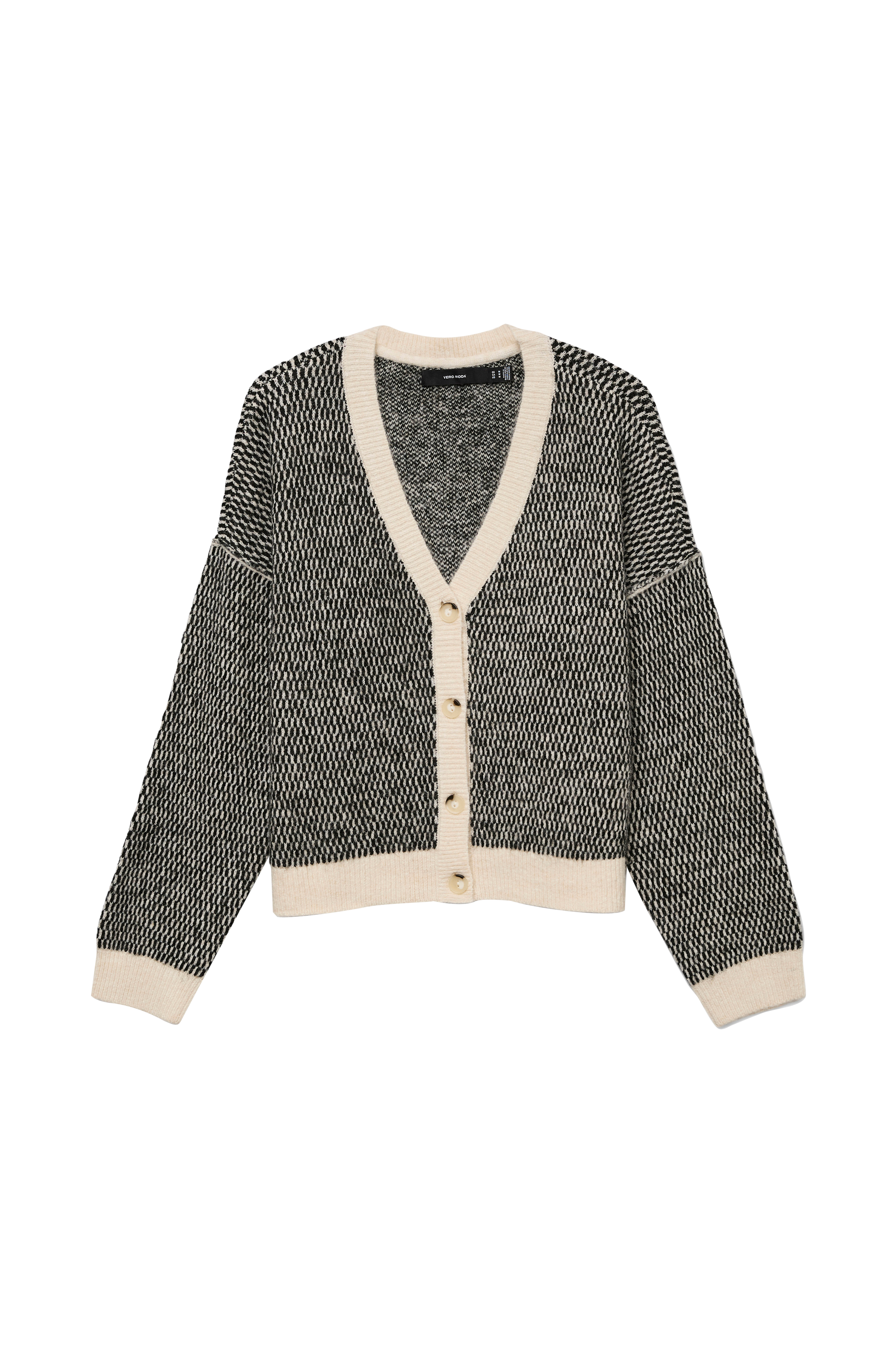 • V-formet, ribbet hals med knapper foran