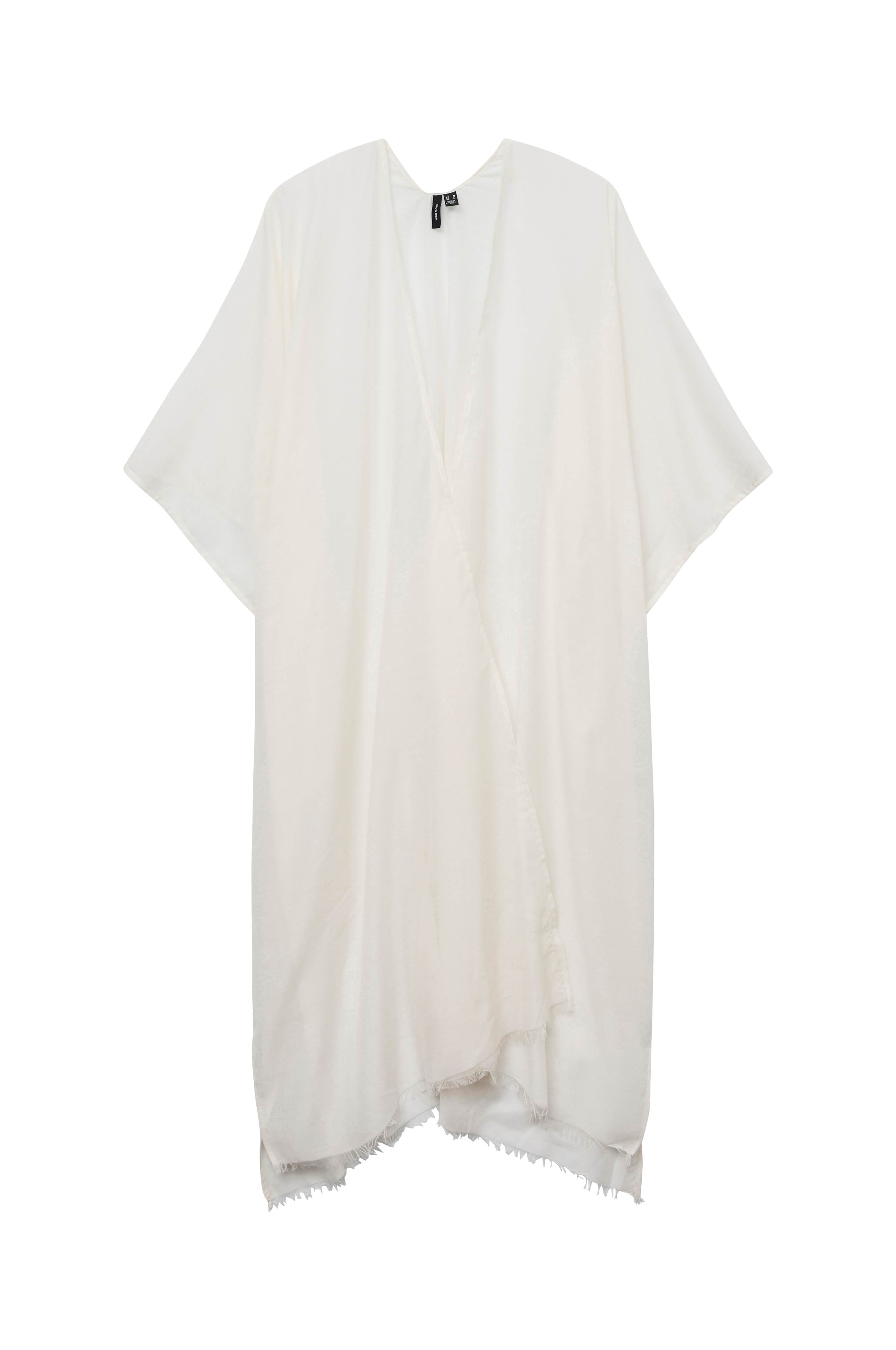 Kimono vmLena Aop Poncho fra Vero Moda i tynn, vevd kvalitet med vide, korte ermer og sjallignende åpning foran som kan knytes. Smal frynsekant nederst. Lengde bak ca. 109 cm.