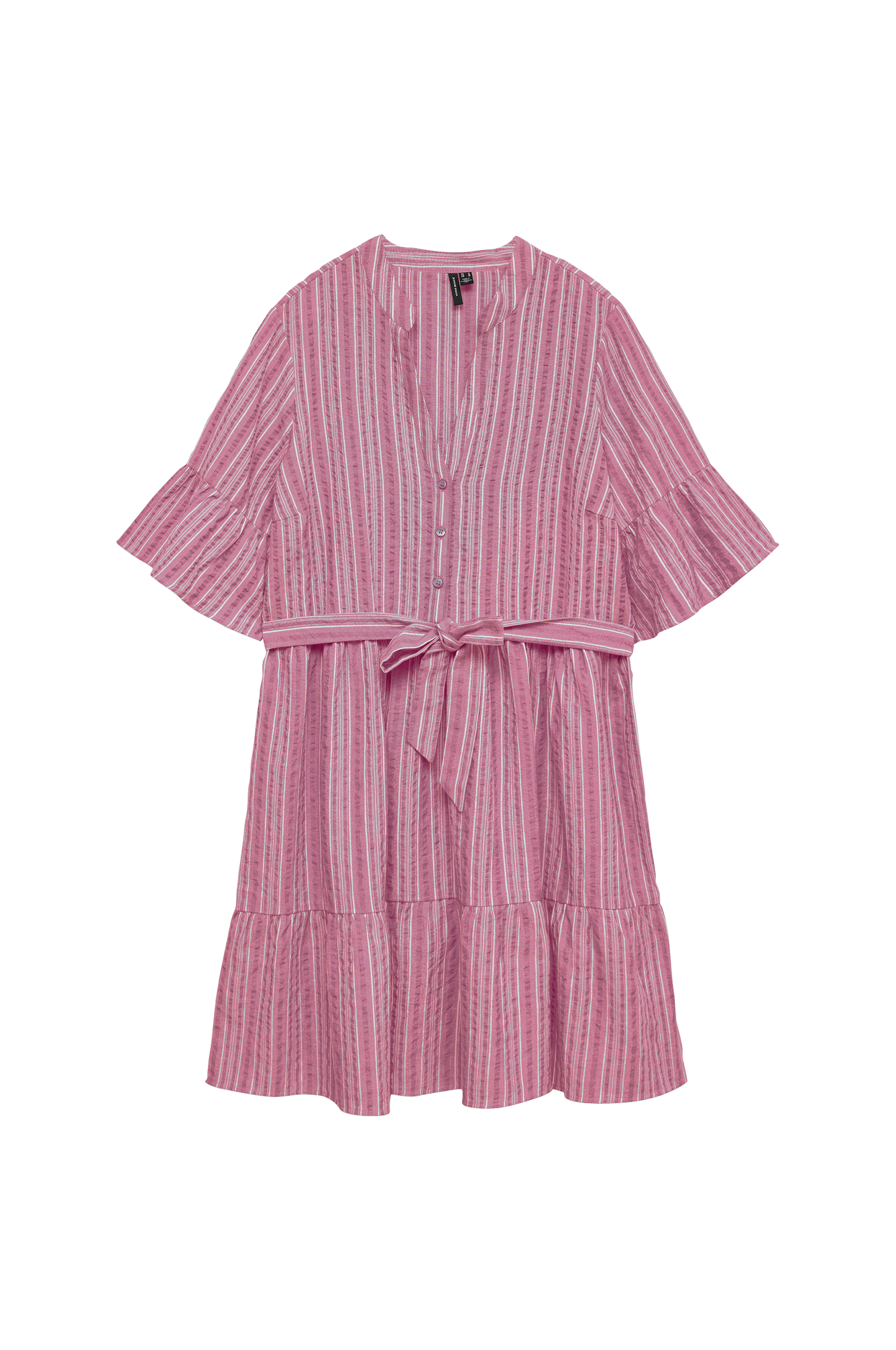• Mønstret kjole i bomull• V-hals• Halvlange ermer• Utsvingte ermeender• Kort frontknepping• Avtakbart knytebånd ved midjen• Volang i nedre kant• Lengde: 90 cm i størrelse S