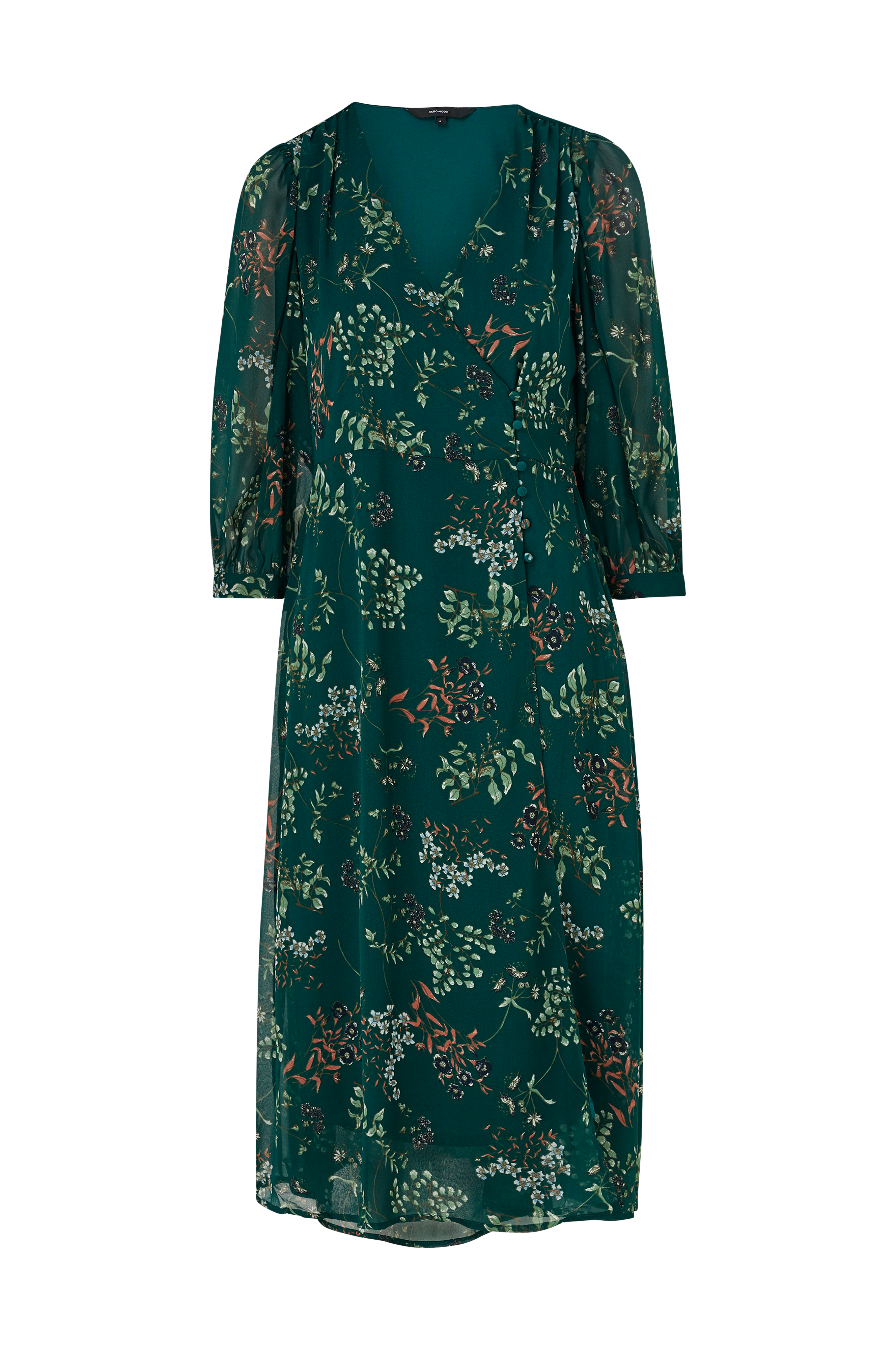 Kjole vmJulie 3/4 Calf Dress fra Vero Moda i omslagsmodell med kledde knapper i den ene siden i midjen. 3/4-lange, vide ermer med mansjetter. Dekorativt rynket på skuldrene. Produsert i chiffon med fôr i trikot. Lengde ca. 118 cm i str S.