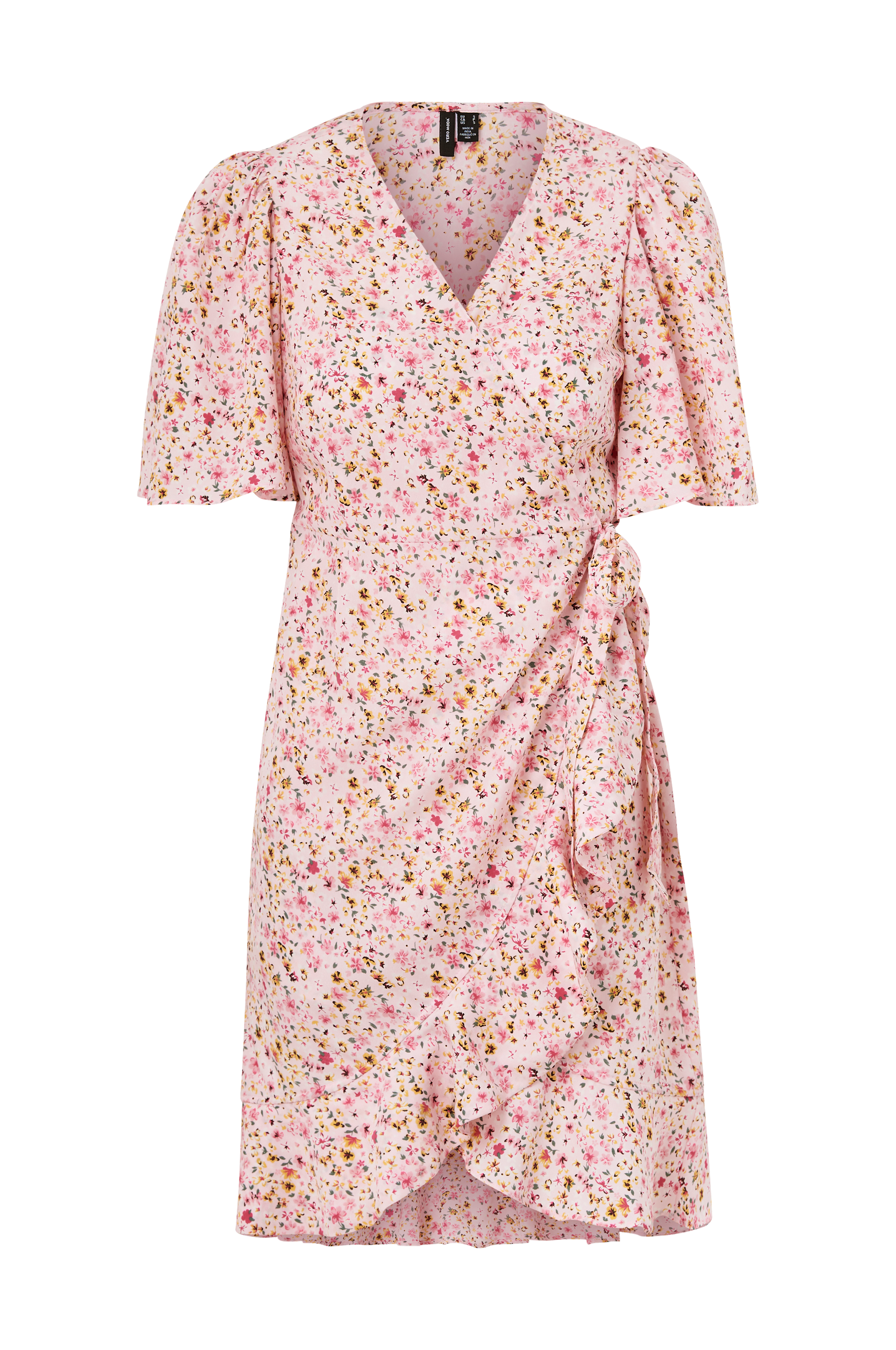 • Omslagsdesign med knytbar stropp i siden • Korte, brede draperte volangermer • Volang på skjørtet • Lengde: 90 cm i størrelse S • Produktet inneholder gjenvunnet materiale som er brukt for å redusere mengden avfall, samtidig som det ikke er brukt nye ressurser.