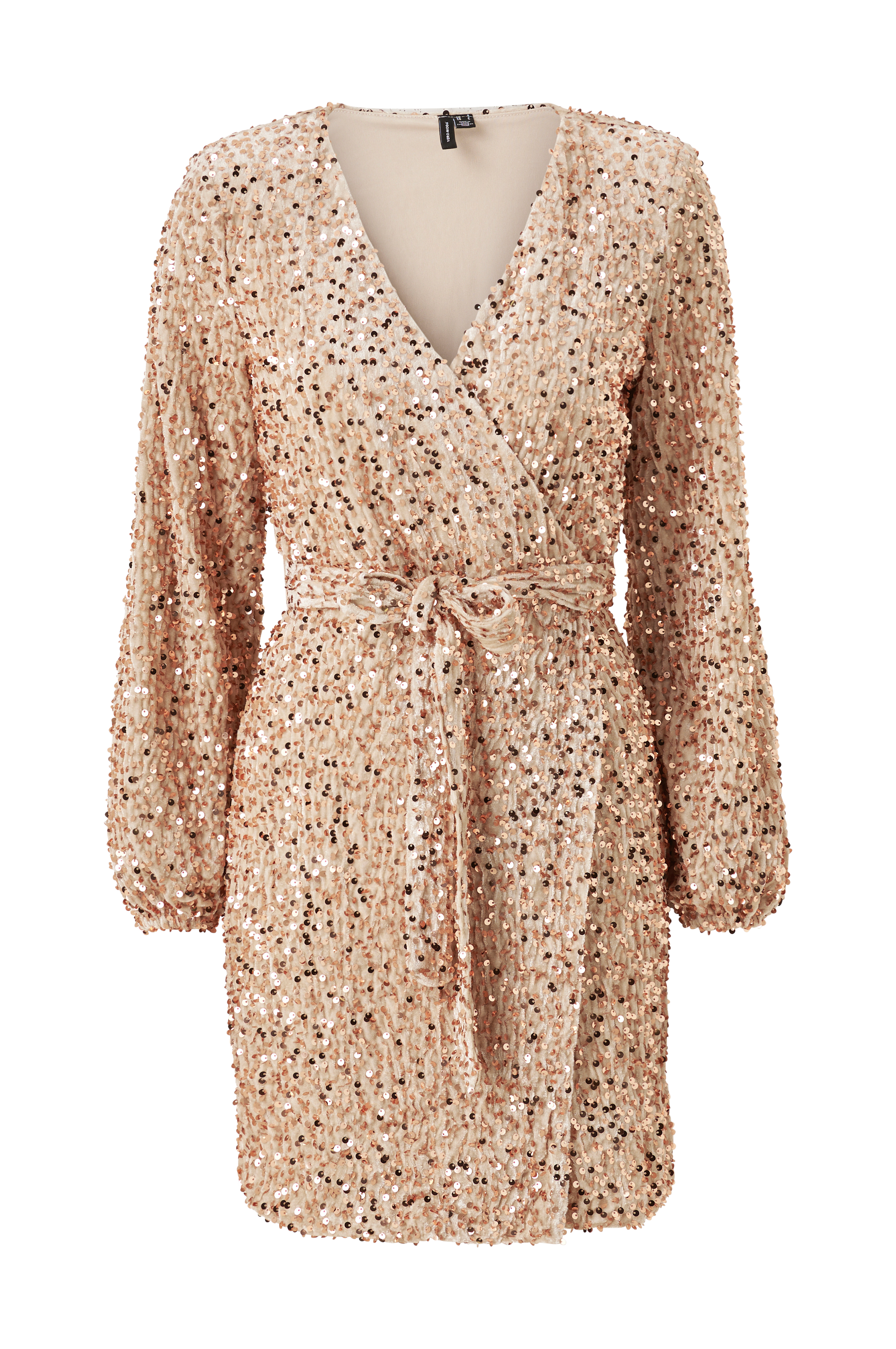 • Kjole i velur med paljetter• Omslagsdesign• Knytbart belte ved midjen• Ballongermer med elastiske mansjetter• Skulderputer• Lengde: 89 cm i størrelse S