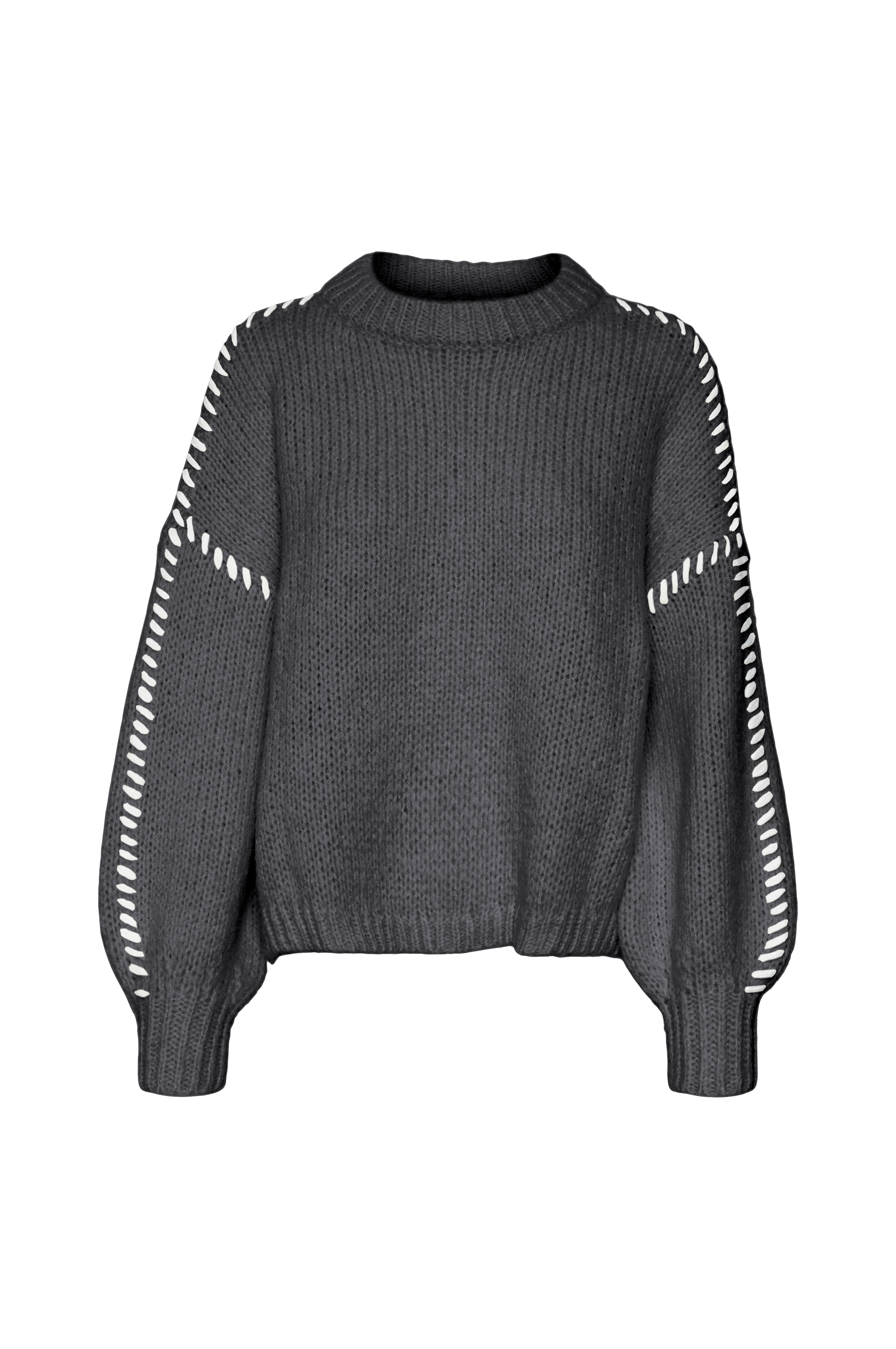 • Strikket genser med kontrastfargede dekorativ strikkinger på ermene