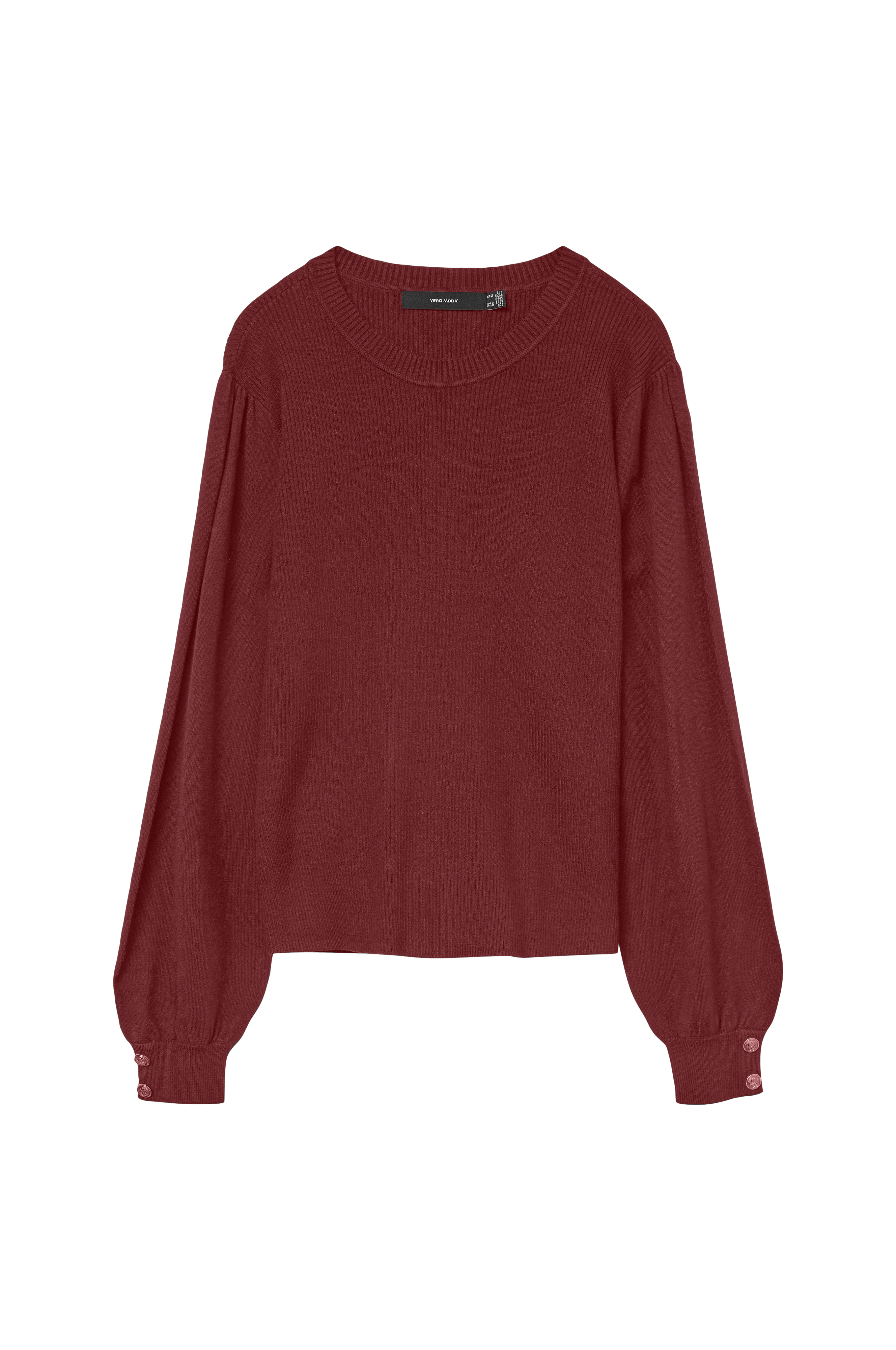• Myk, finstrikket pullover• Ribbet mansjetter med dekorative, gullfargede knapper i ermeslutten• Lange bobleermer• Rund, ribbet hals