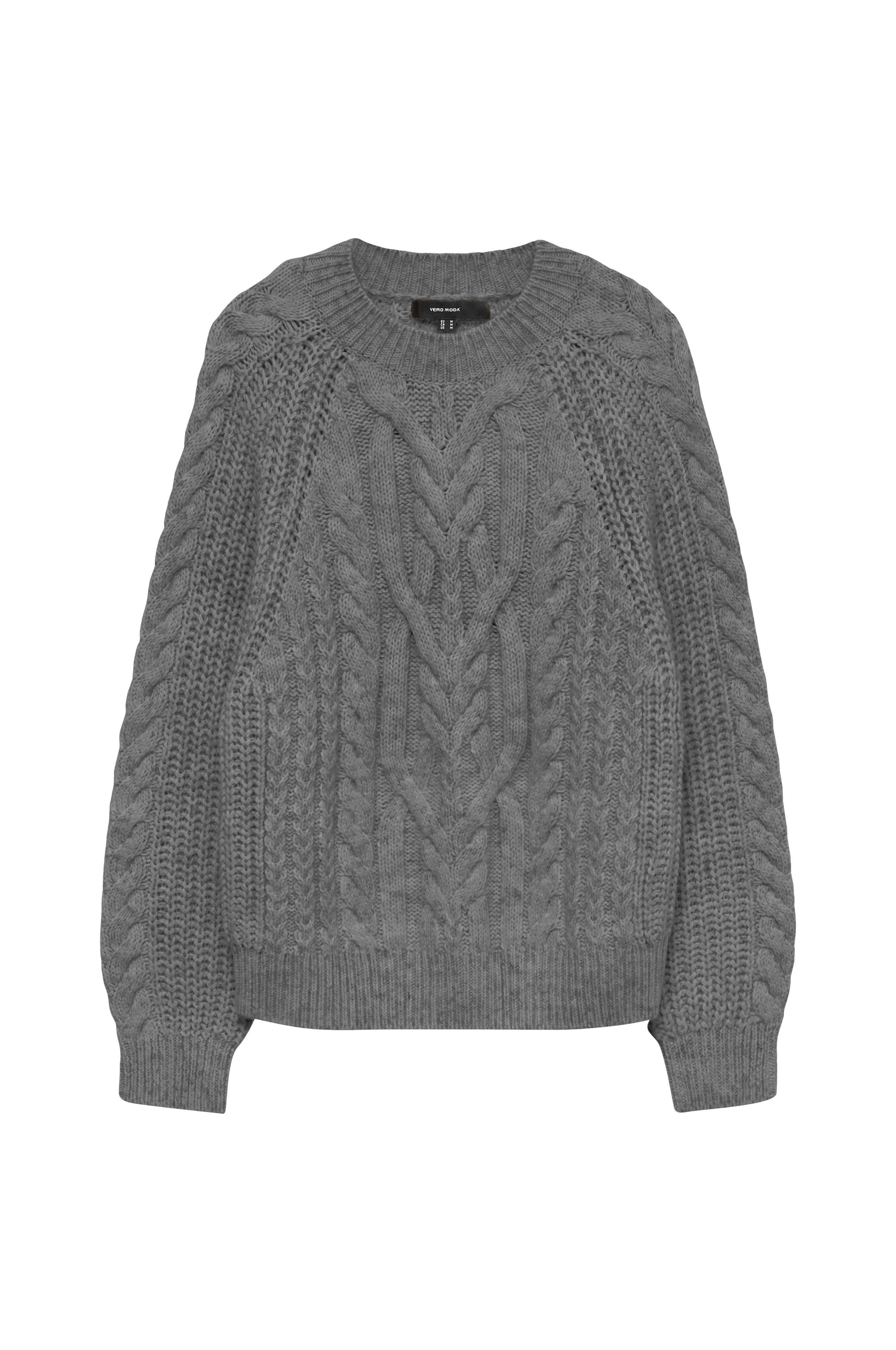 • Langermet, kabelstrikket pullover med rund, ribbet hals