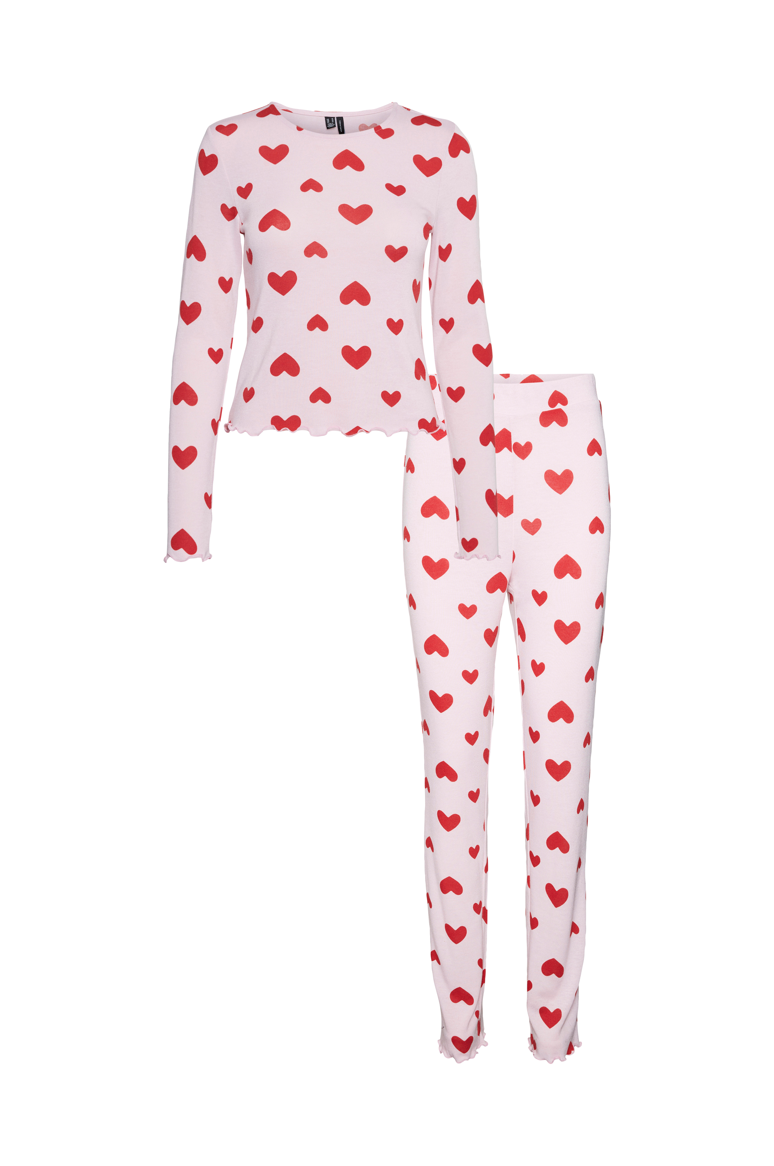 • Pysjsett i myk, stretchy jersey med trykkede hjerter• Langermet topp med rund halsringning• Bølgede kanter i ermeslutten og på bunnen• Bukser med elastisk midje• Bølgede kanter i enden av benet
