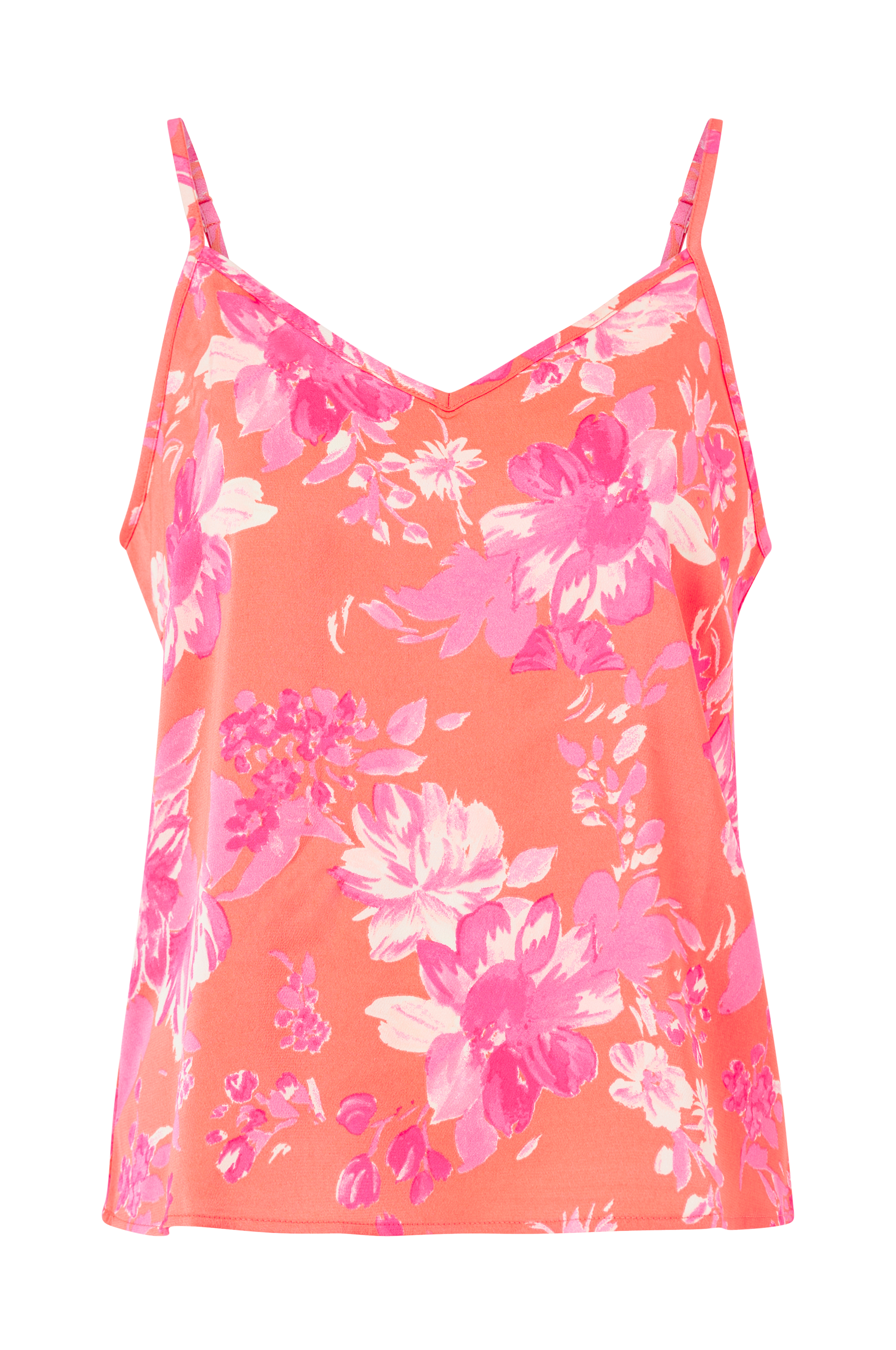Mønstret singlet med V-utringning foran og dekorativ V-utringning med bånd bak. Smale, justerbare skulderbånd.