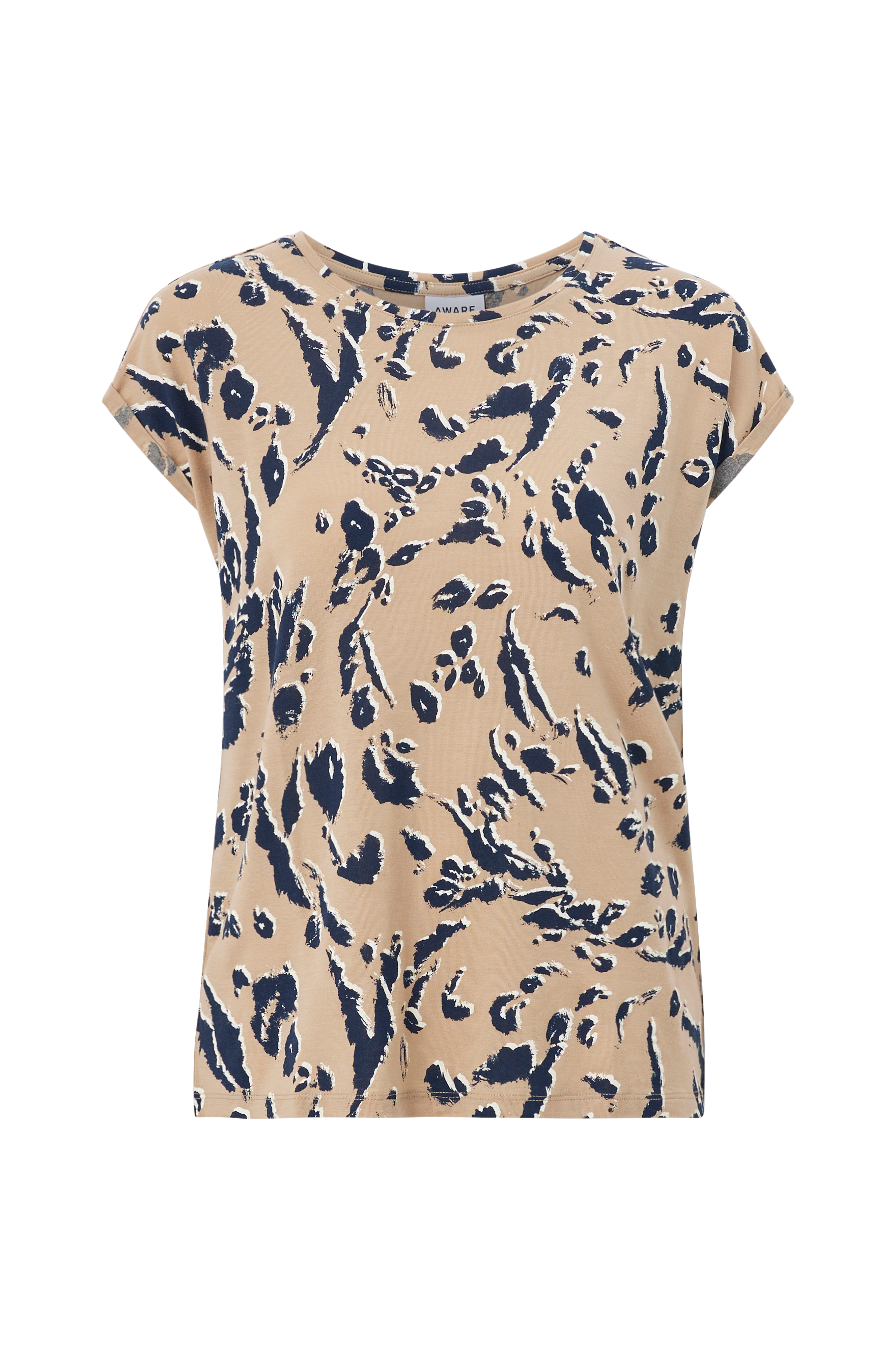 Kortermet topp i myk, elastisk trikot med rund hals og korte ermer med oppsydde ermekanter.