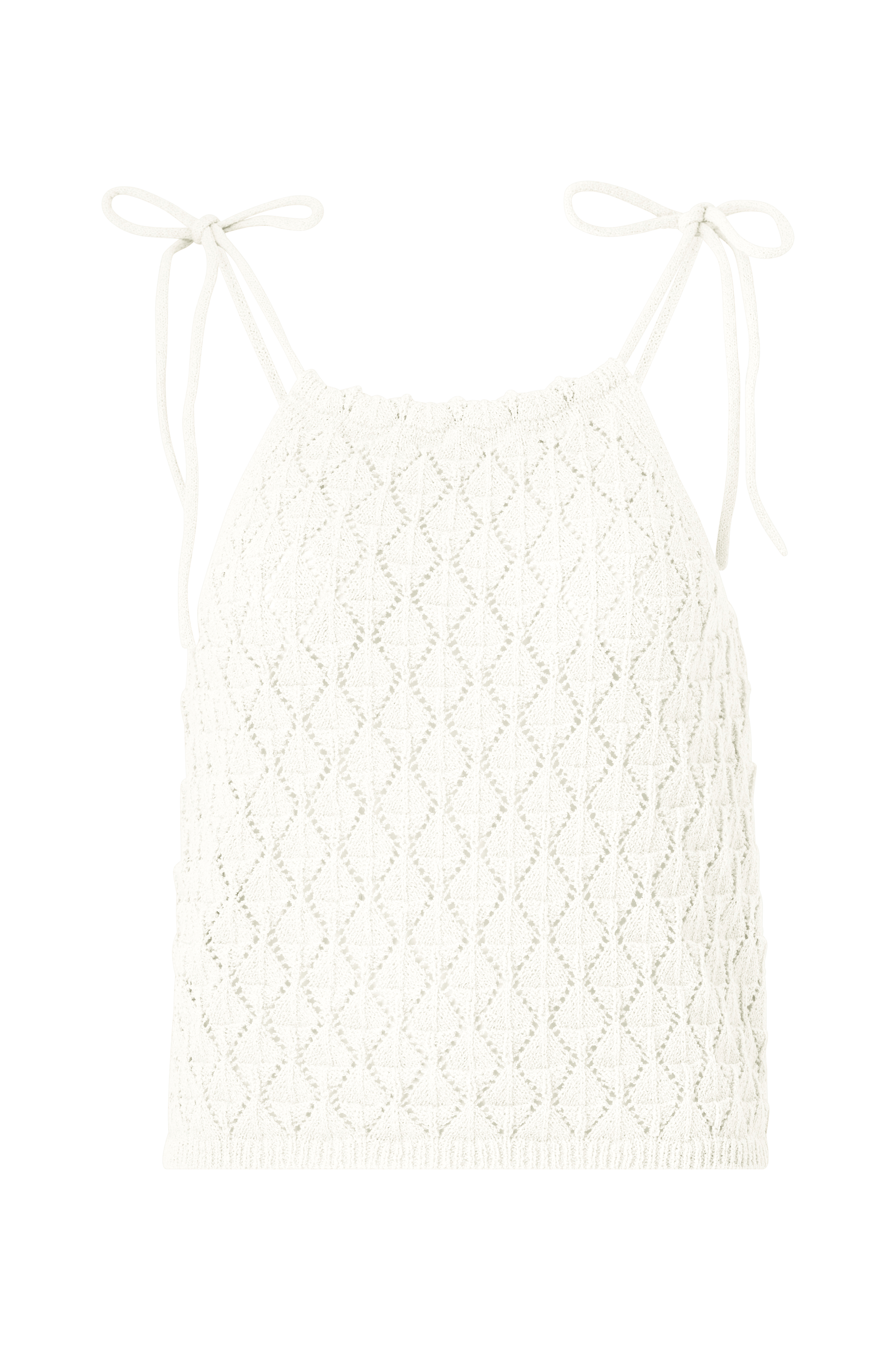 • Mønsterstrikket modell• Tynne, knytbare skulderstropper• Ribbestrikk i nedre kant