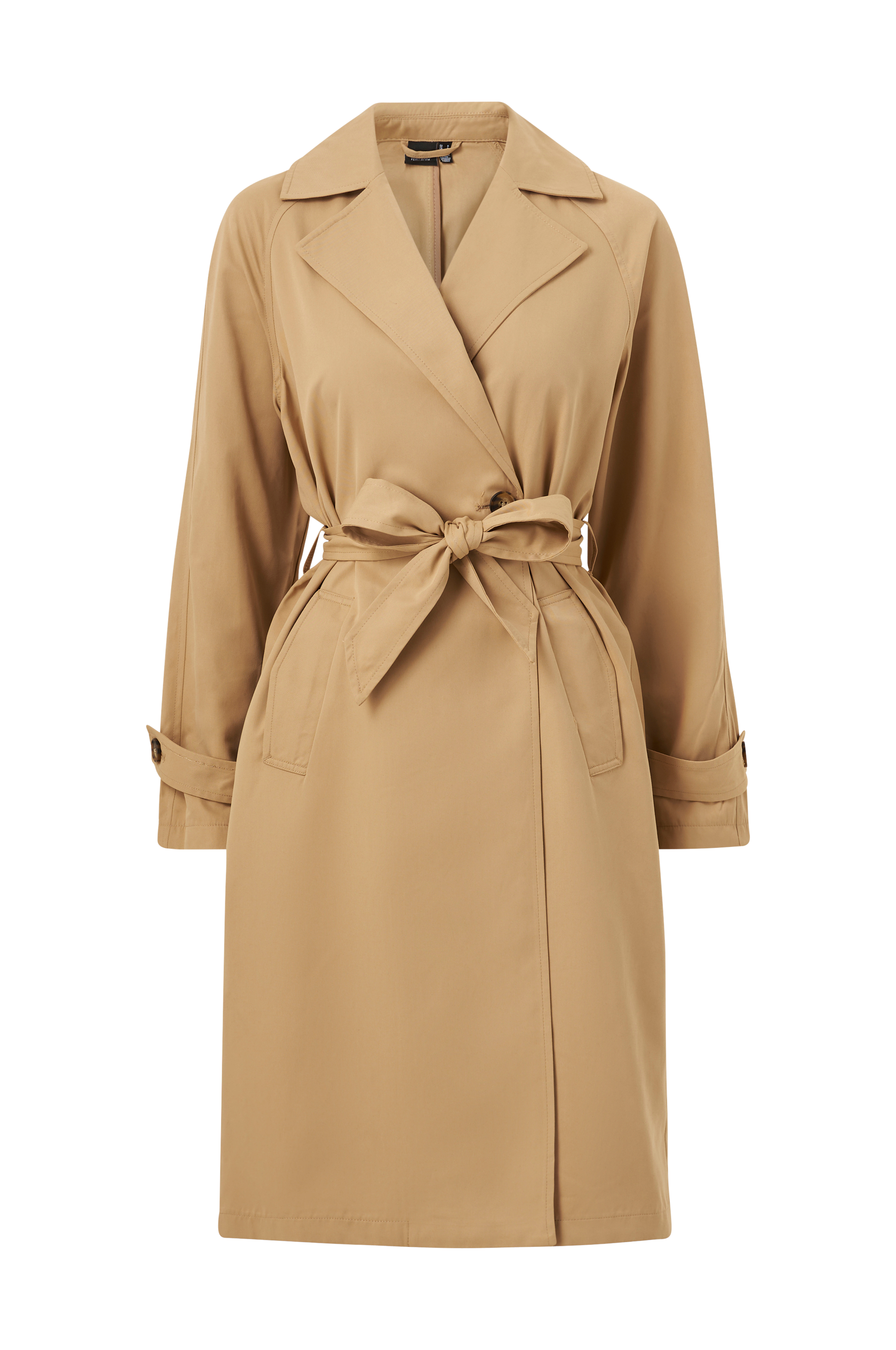 • Dobbelbryst modell• Avtakbart knytbart belte ved midjen• Knappedetalj i ermeslutten• To lommer• Skjær nedover ryggen• Lengde: 106 cm i størrelse S