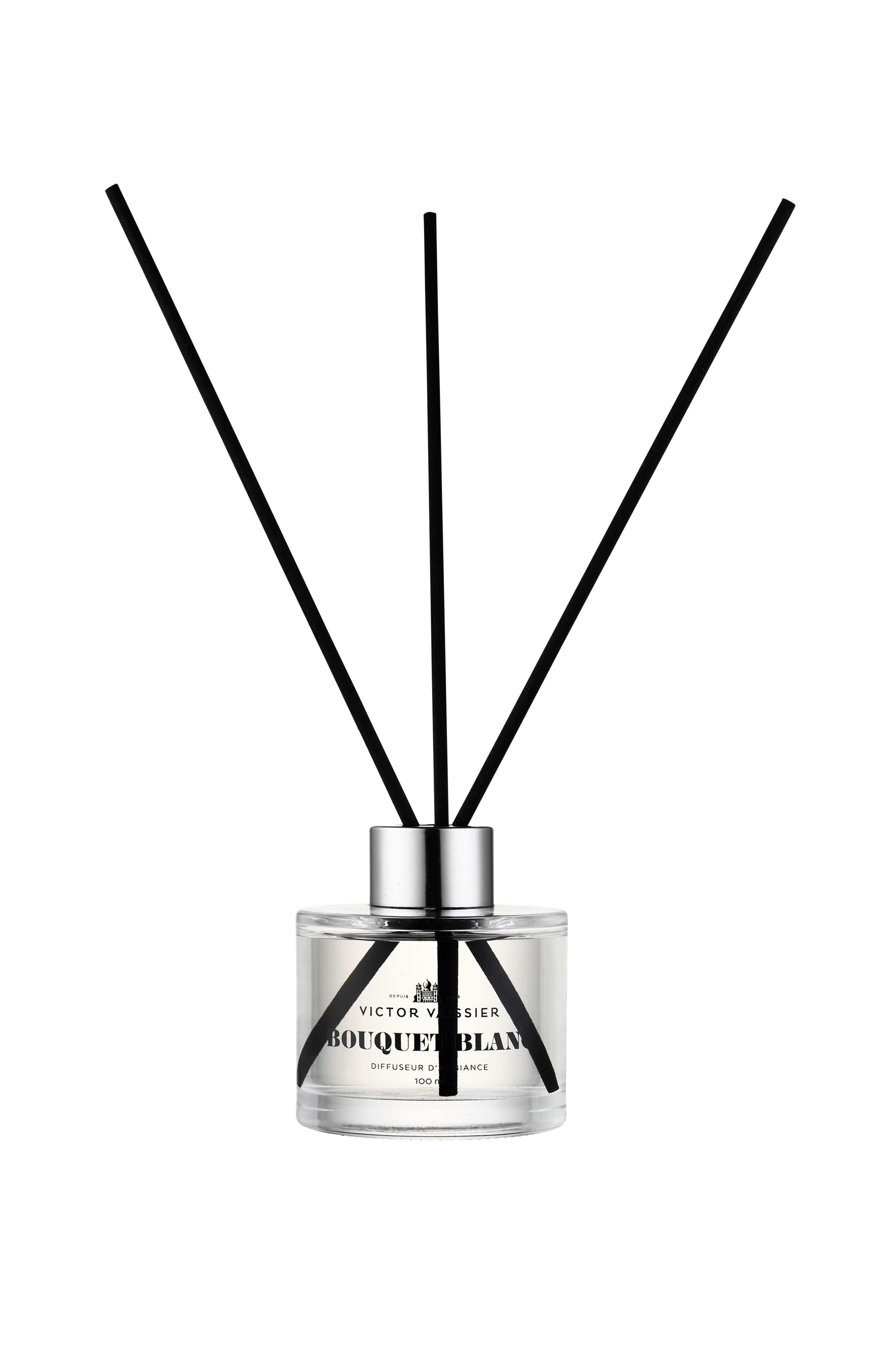Den herlige Bouquet Blanc-diffuseren inneholder en duftbærende olje som er framstilt med nyanser av nyplukket sjasmin og hvit orkidé. For en intens duftopplevelse, bruk alle de fem svarte pinnene og snu dem i blant. Inneholder to ulike, valgfrie lokk (kobber og sølv) for å kunne fargematche med ditt øvrige interiør. Gir cirka 8-10 uker deilig duft til rommet avhengig av hvor mange pinner som brukes. Dette produktet kan forårsake allergiske reaksjoner ved hudkontakt.