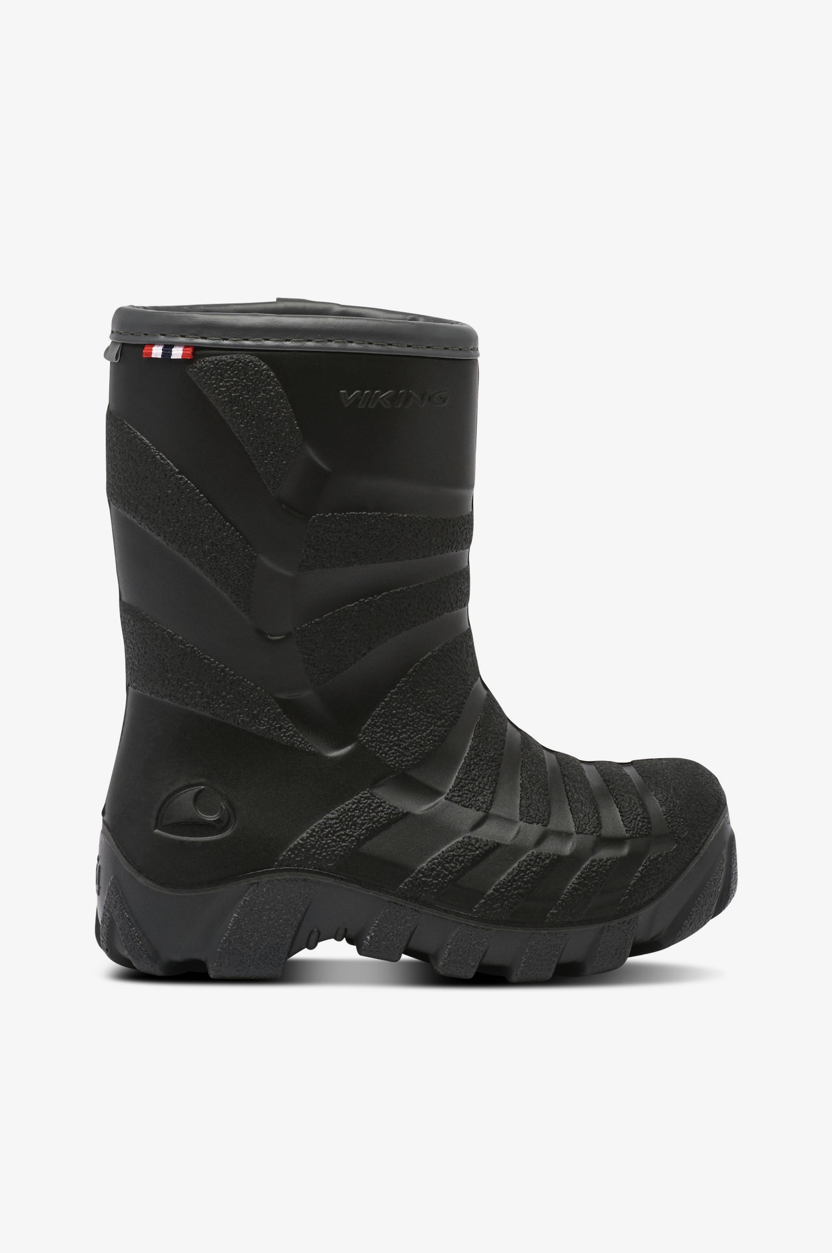 • Vanntette, varm-forete vinterstøvler i PU med lav vekt • Varm foring i ullblanding • Forsterket tå • Uttagbar innersåle • Refleksdetalj på skaftet • Lett å ta av og på • Vikings Nordic-såle gir ekstra plass til tærne og gir komfort hele dagen • Tykke PU-såler med robuste slitebaner gir godt grep og stabilitet på snø og is