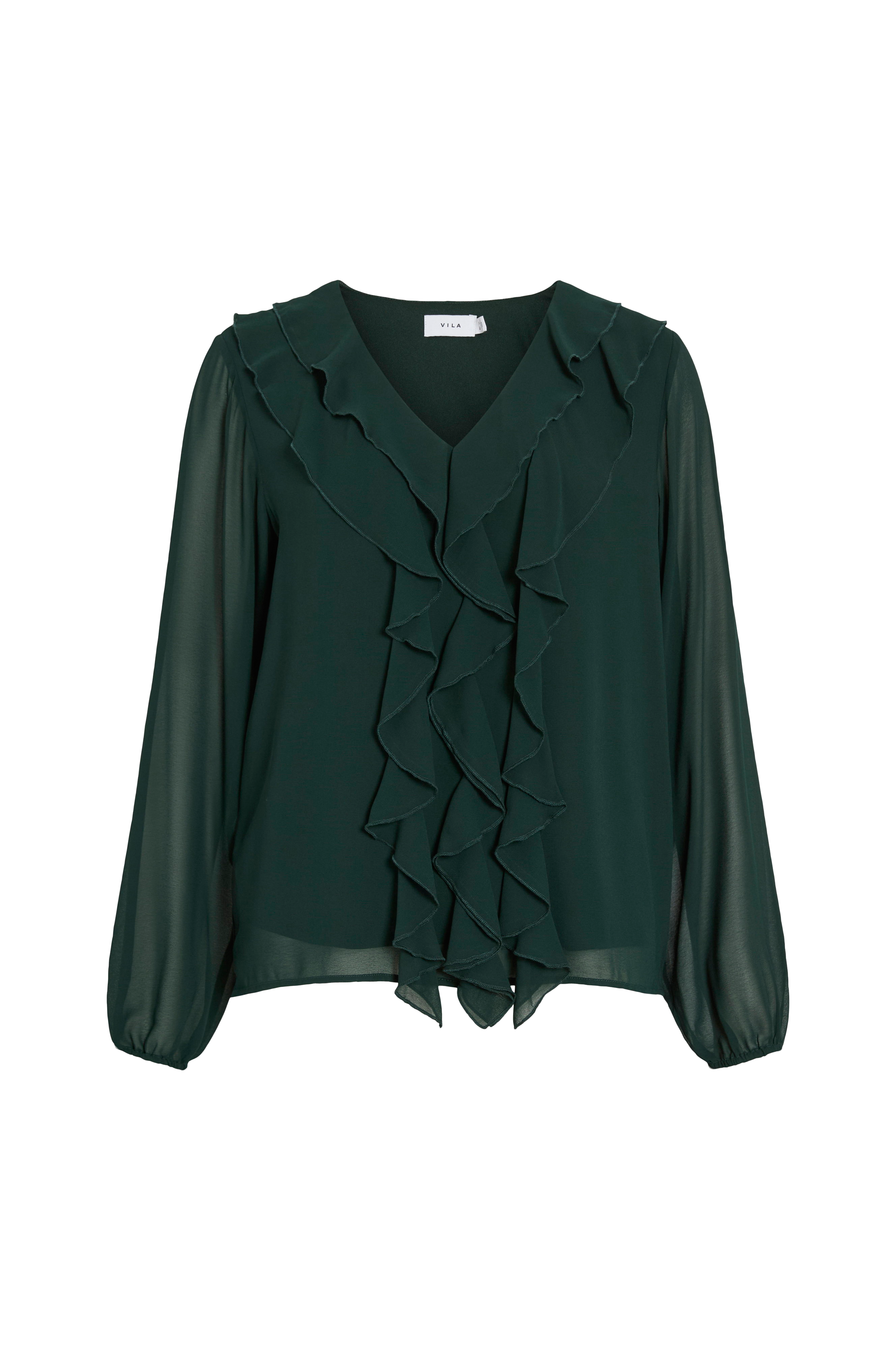 • Bluse i chiffon med volanger• V-hals• Lange ermer• Gummistrikk i ermeslutten• Tekstilfôr• Normal passform