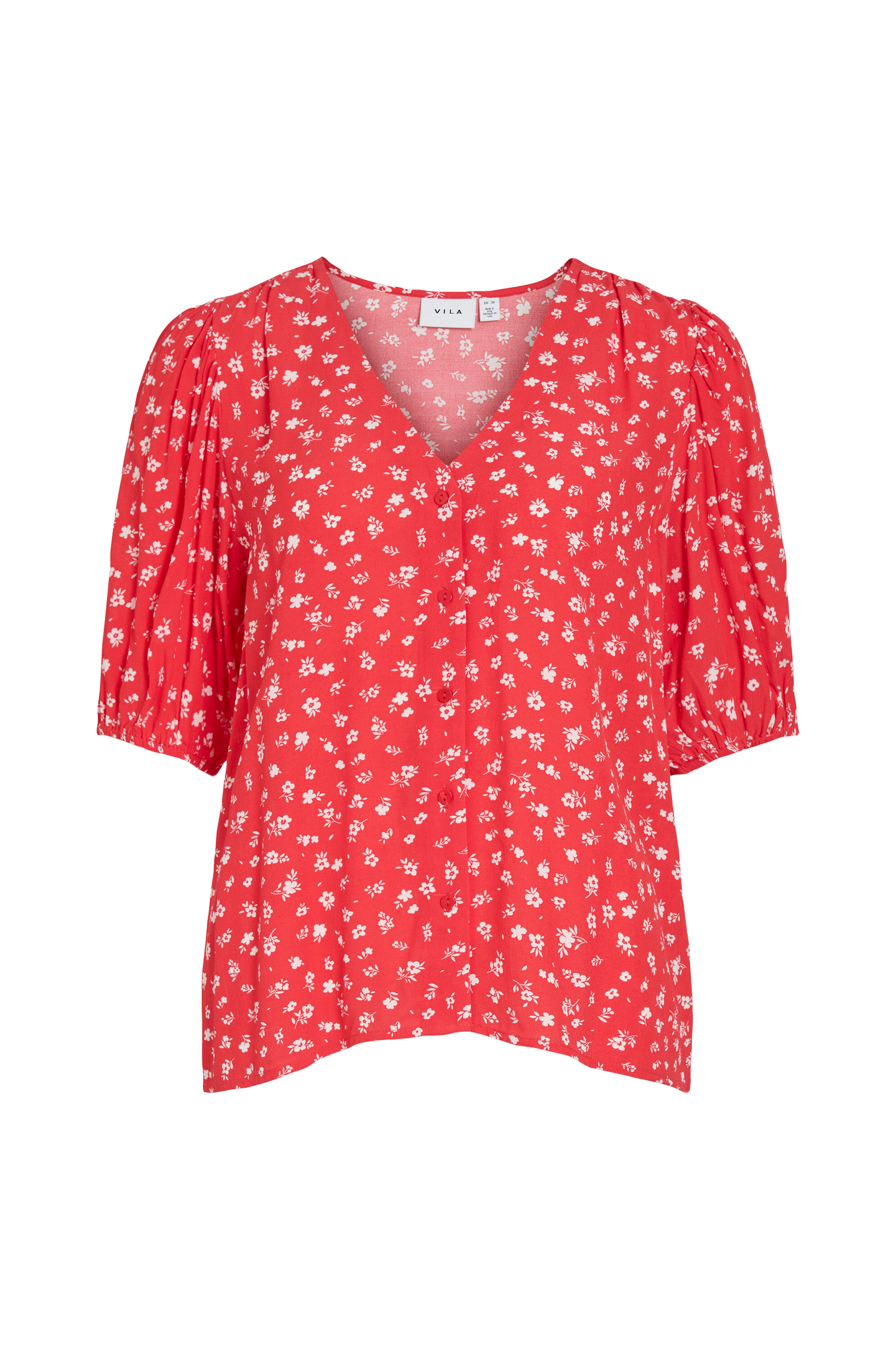• Bluse med v-formet hals• Halvlange puffermer med innvendig gummistrikk i ermeslutten• Knapper foran