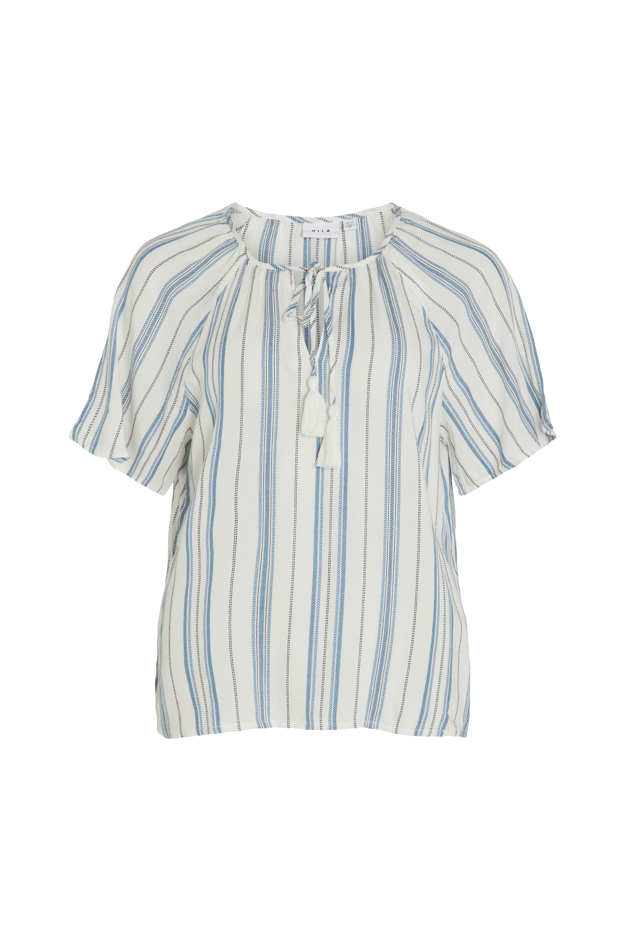 • Rett modell• Rund hals med rysje og knyting foran• Kort, bredt raglanerme