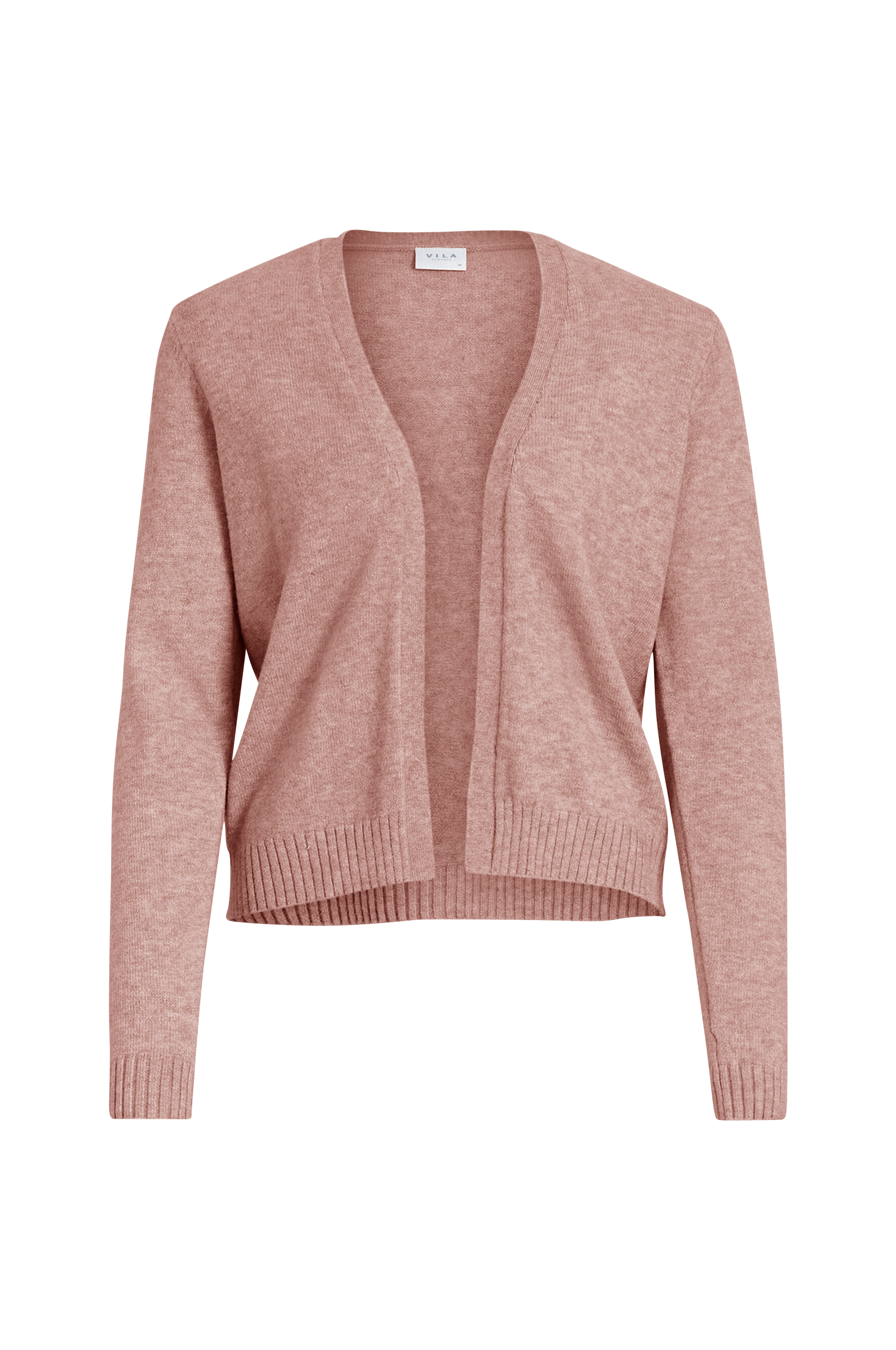 Cardigan viRil Short L/S Knit Cardigan fra Vila i myk, finstrikket viskoseblanding. Kort, åpen modell med ribbestrikket erme- og nederkant.