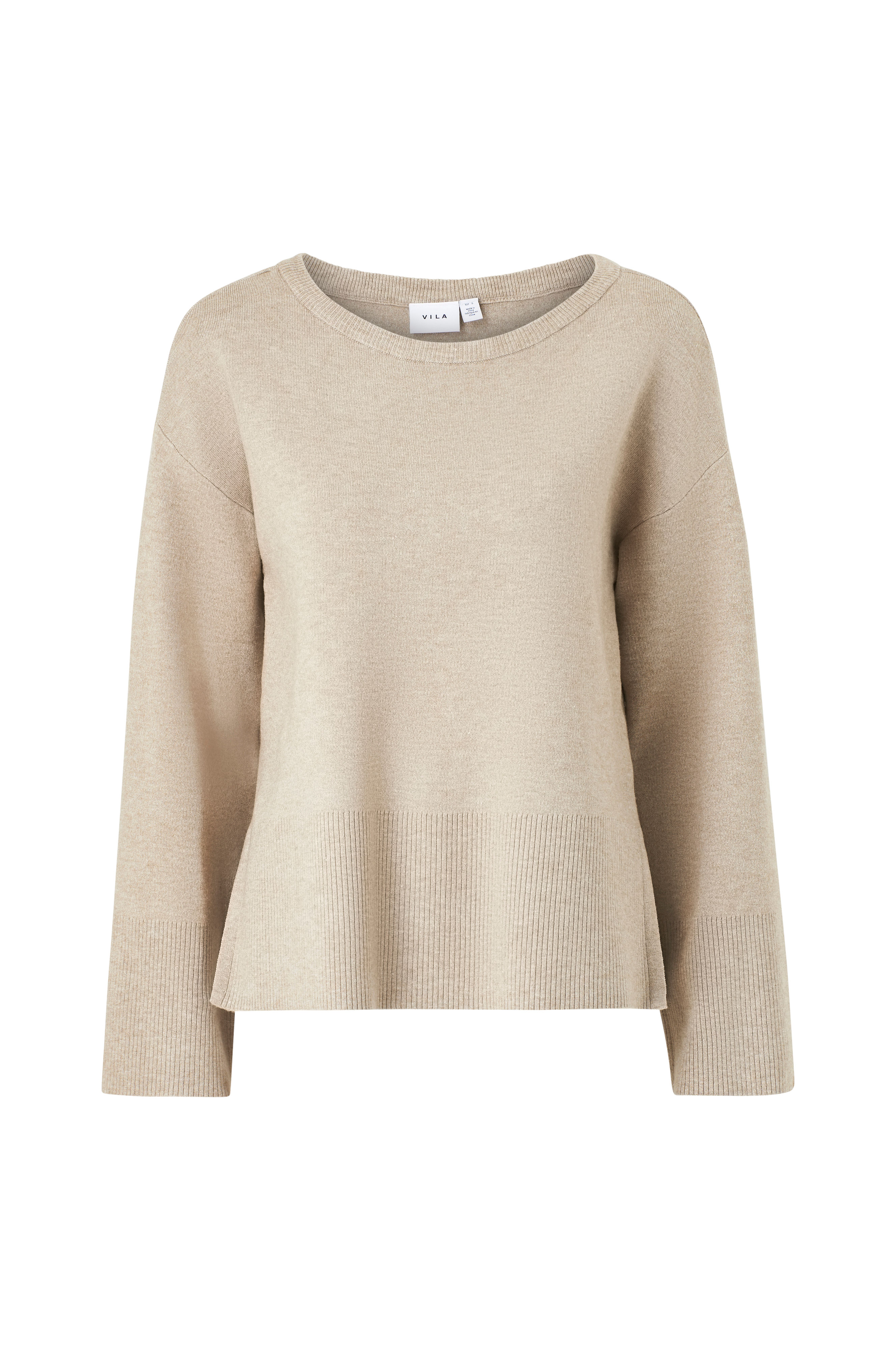 • Strikket genser• Laget av viskosemiks• Rund halsringning• Utringede skuldre• Splitt i sidene• Ribbestrikk i ermeslutten og på bunnen