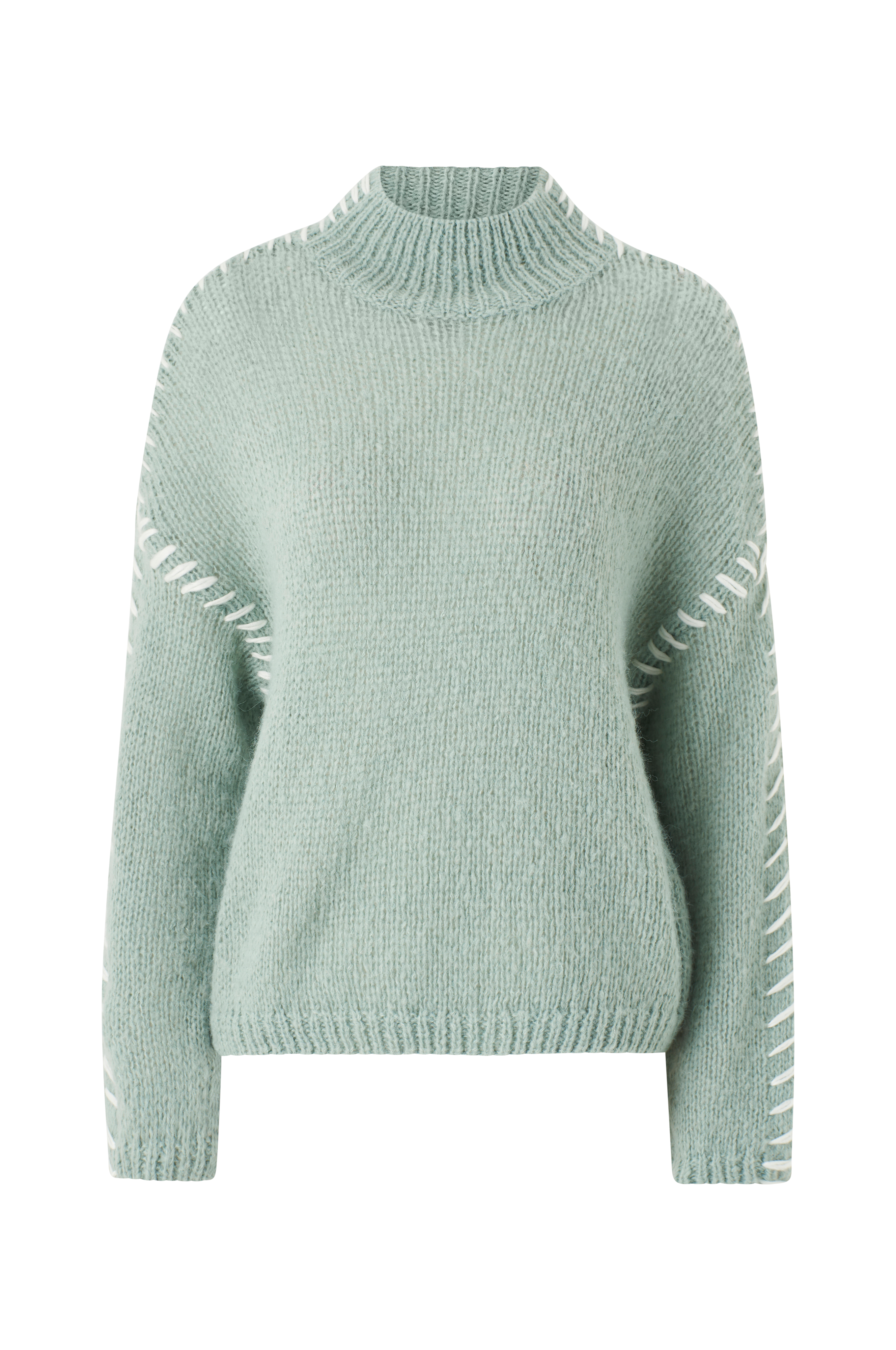 • Myk, løsstrikket kvalitet• Høy, ribbestrikket hals• Utringede skuldre• Løs passform