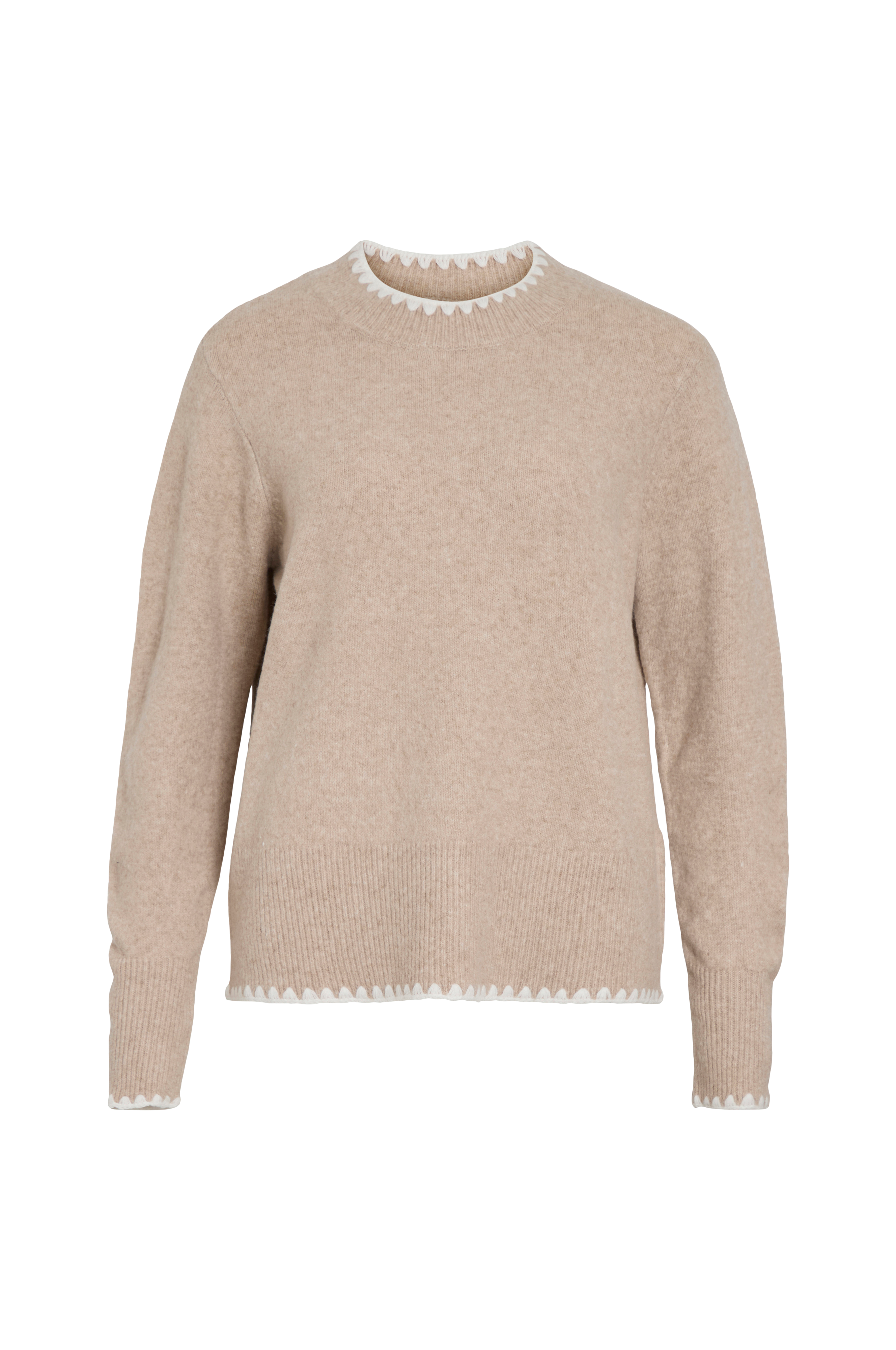 • Strikket genser med rund halsringning• Dekorstrikkede kanter ved armenden, på bunnen og rundt halsringningen• Ribbet mansjetter i ermeslutten og på bunnen