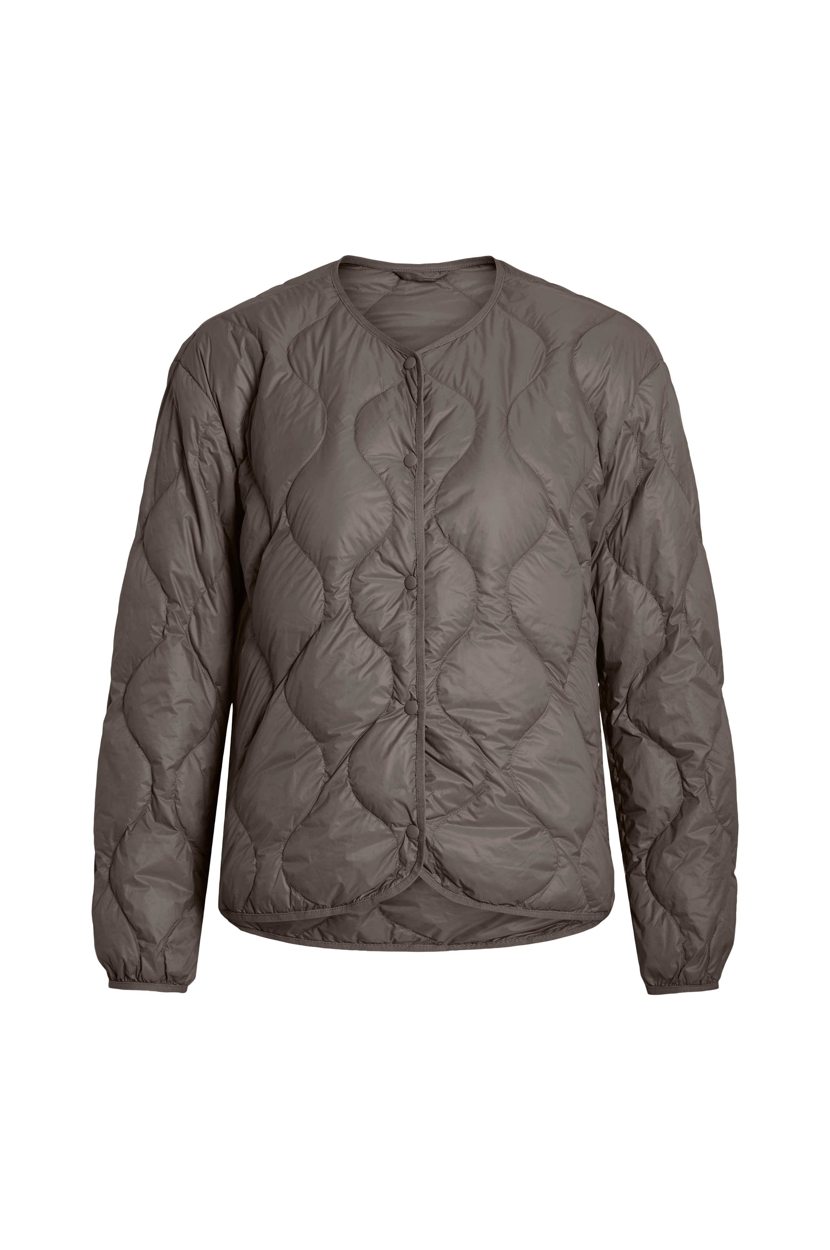 • Vattert, lett polstret jakke med rund hals• Trykknapper foran• Sidelommer• Skjær nede i sidene• Lengde: 64 cm i størrelse 36