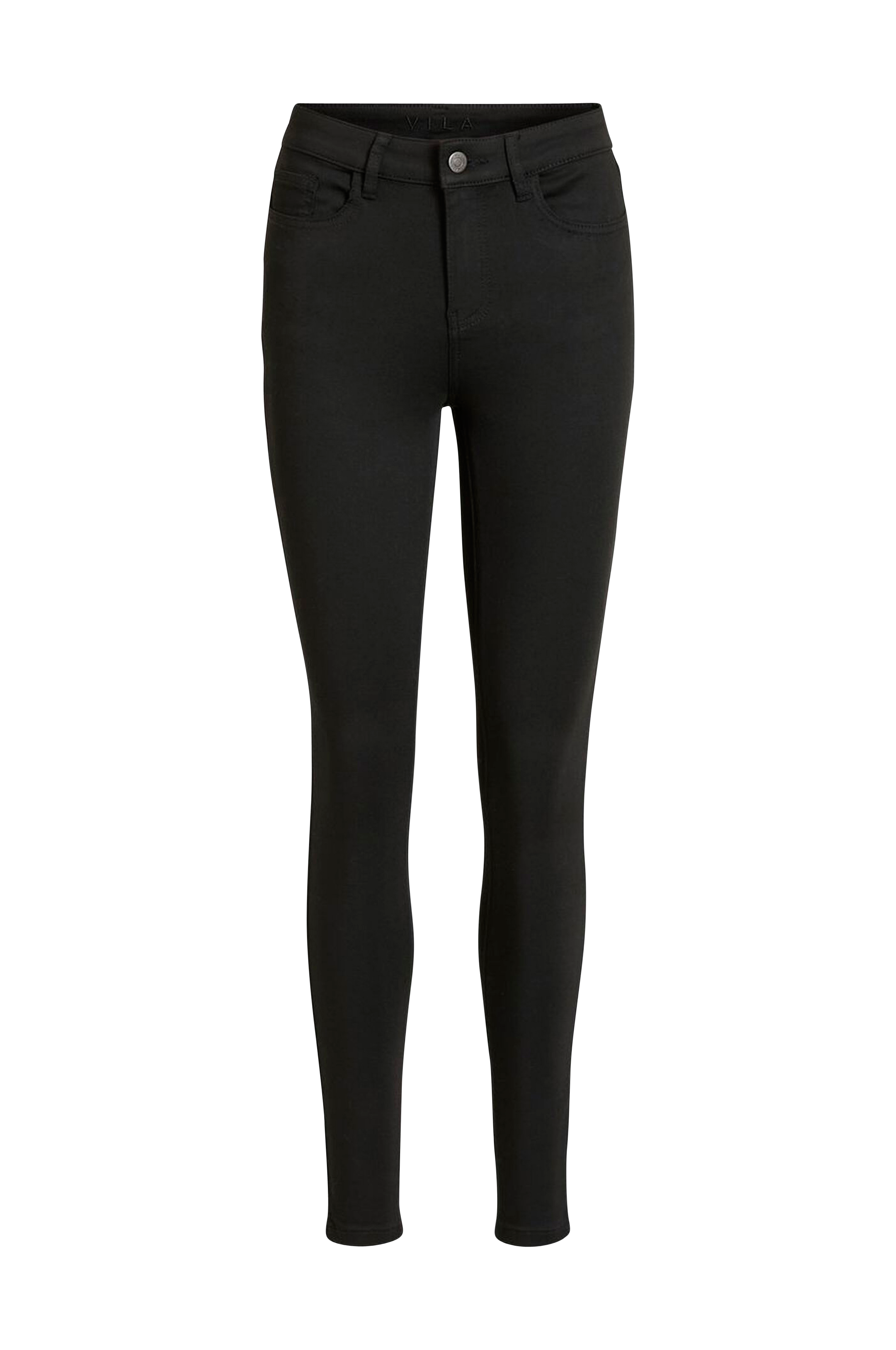 Normalhøye stretchbukser som sitter som en «sekk». Det vil si, tilpasser seg i henhold til kroppens former. Det er veldig lykkelig. Holder fargen super god.
