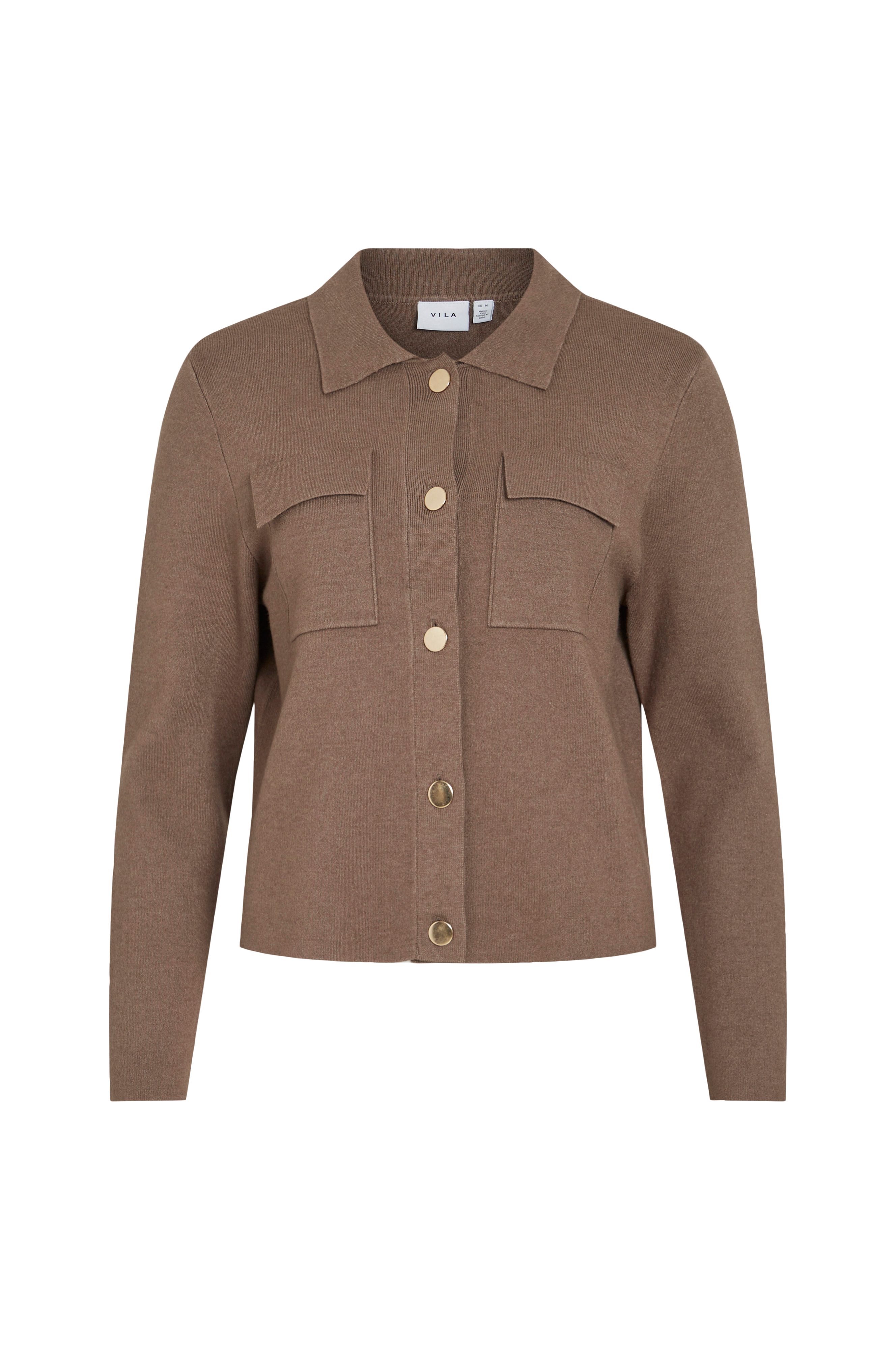 • Rett modell• Ribbestrikket krage• Gullfargede knapper foran• Langt erme