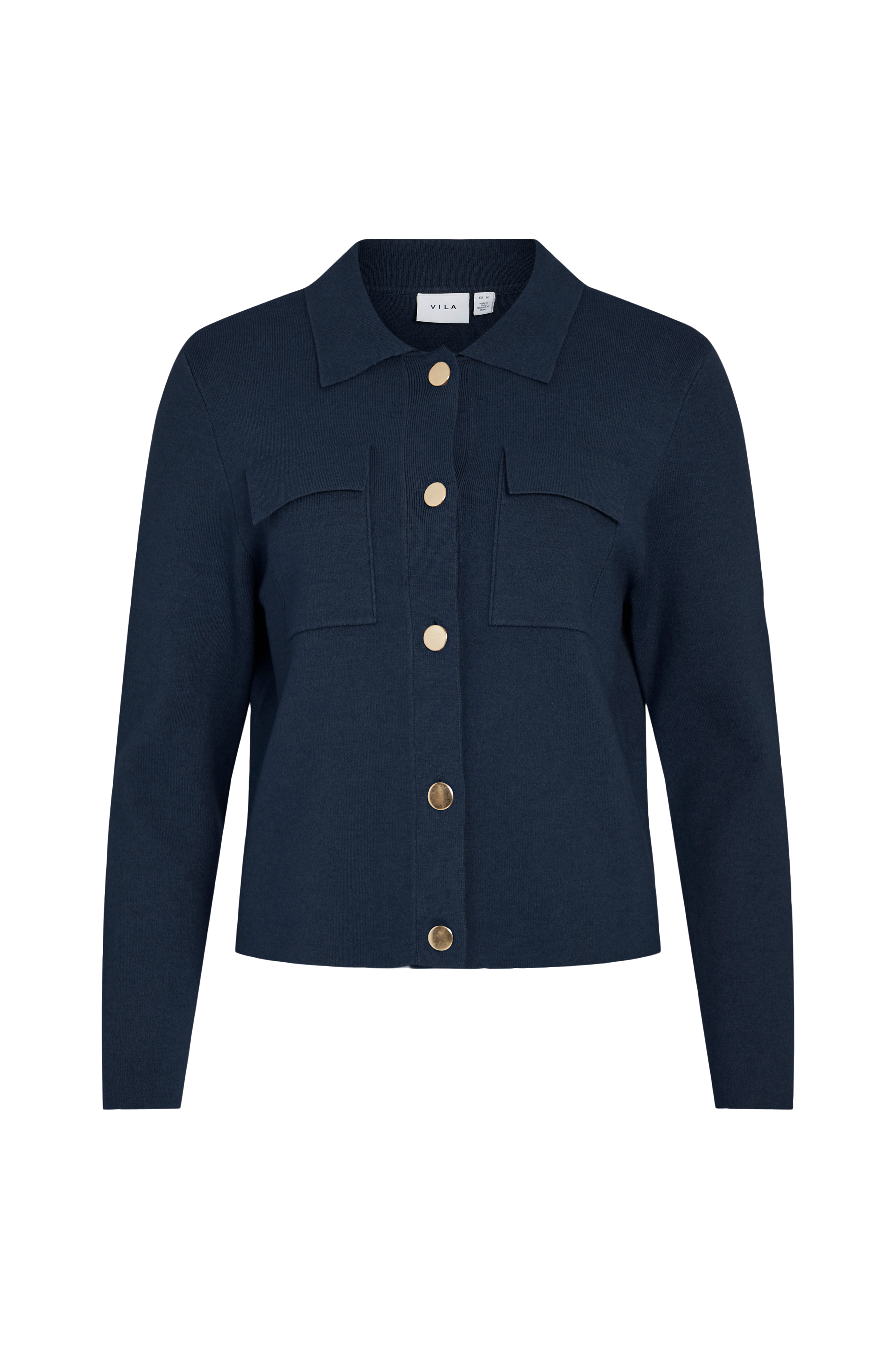 • Rett modell• Ribbestrikket krage• Gullfargede knapper foran• Langt erme