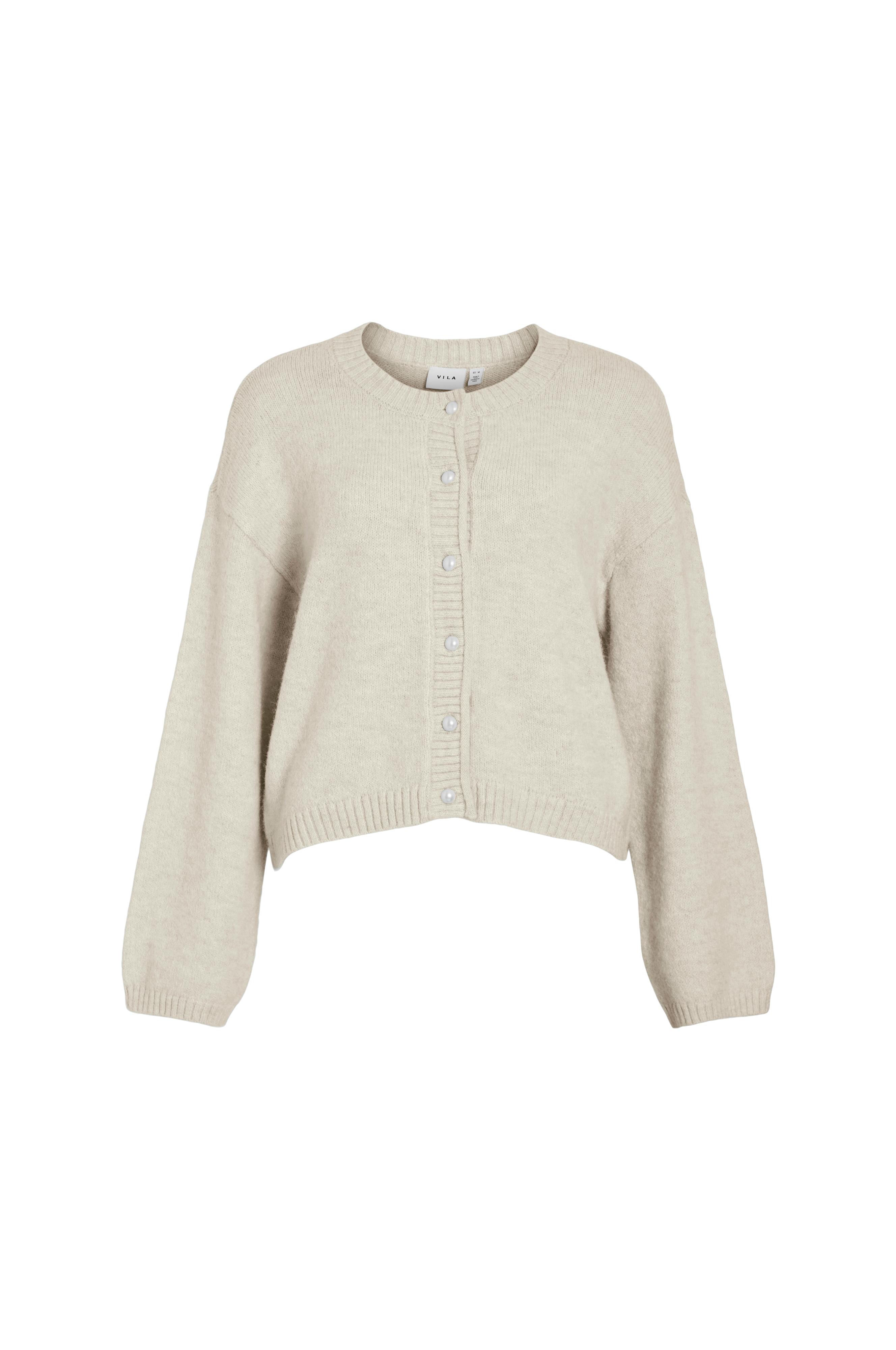 • Myk kardigan i ullmiks• Rund, ribbet hals• Perleknapper hele veien fram• Utringede skuldre• Lange, brede ermer• Ribbestrikk i ermeslutten og i nedre kant