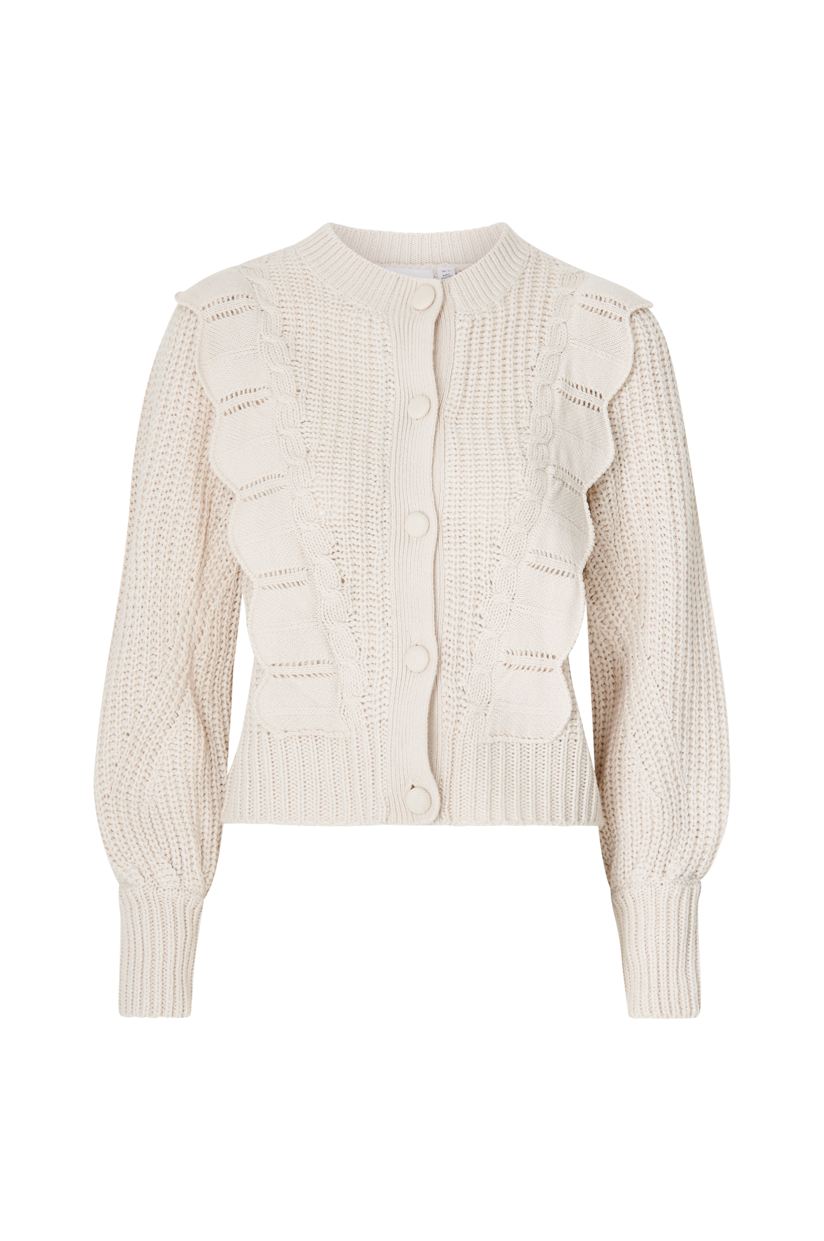 • Påsydde volangkanter med mønsterstrikk foran