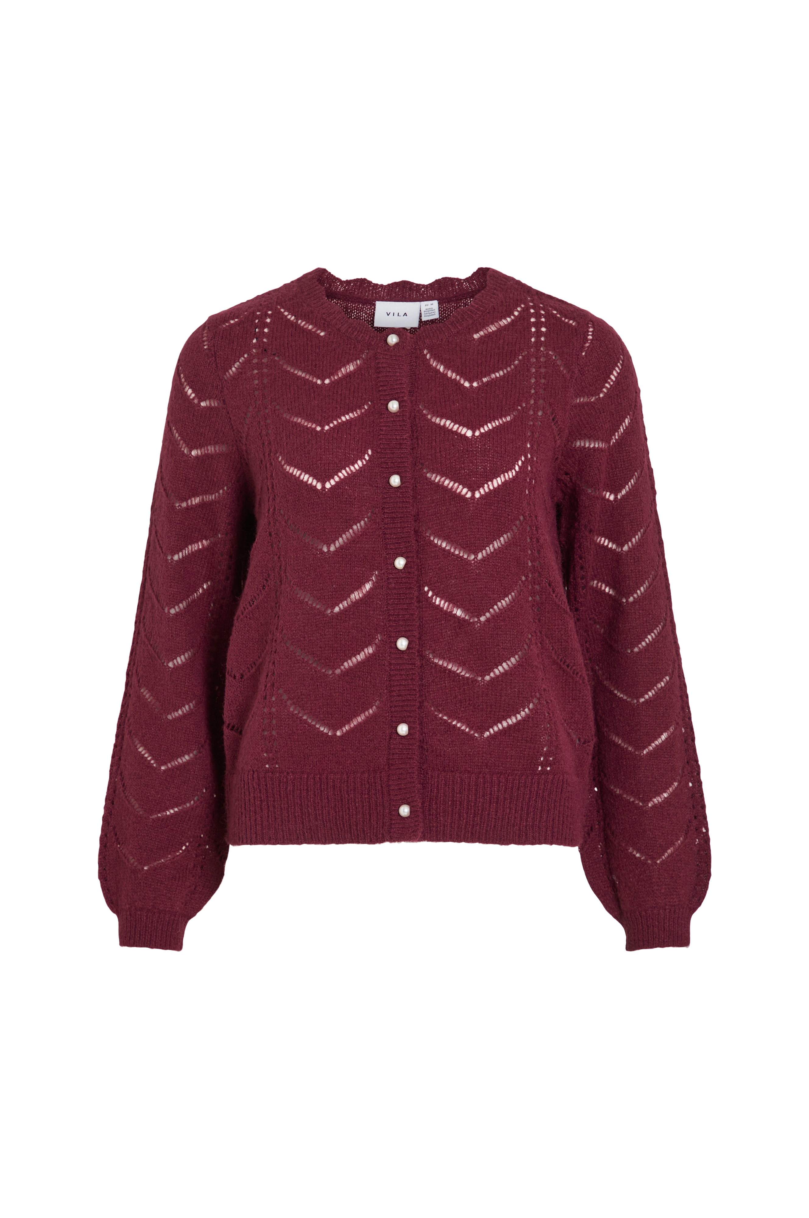 • Strukturstrikket kardigan med løsstrikkete detaljer• Rund, bølget hals• Dekorative perleknapper hele veien fram• Lange ermer med ribbestrikk på bunnen• Bred ribbestrikk i nedre kant