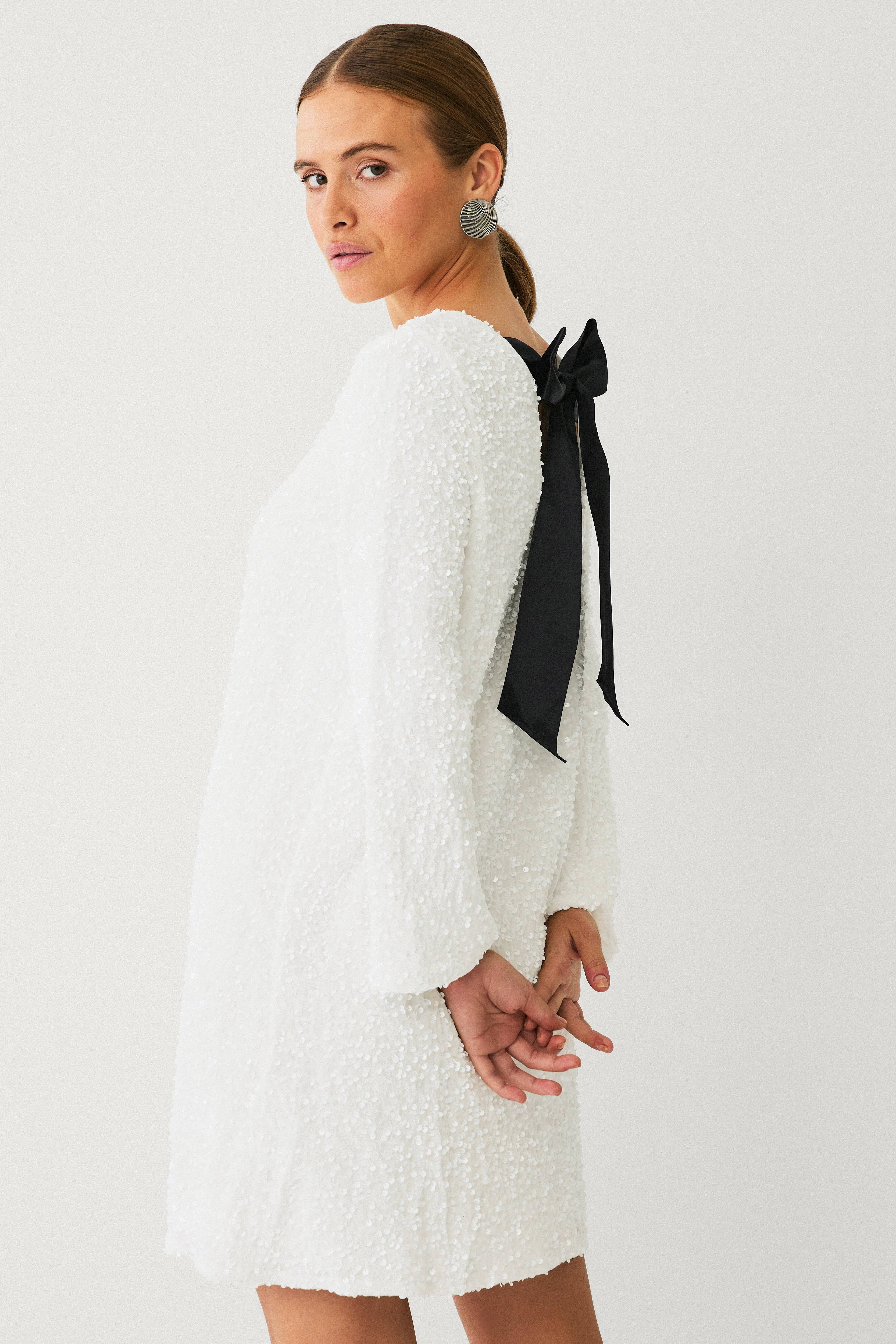 • Modell med broderte paletter overalt• Rund hals med v-hals snitt i ryggen og bredt, knytbart satengbånd i nakken• Langt erme• Fôret• Lengde: 90 cm i størrelse 36
