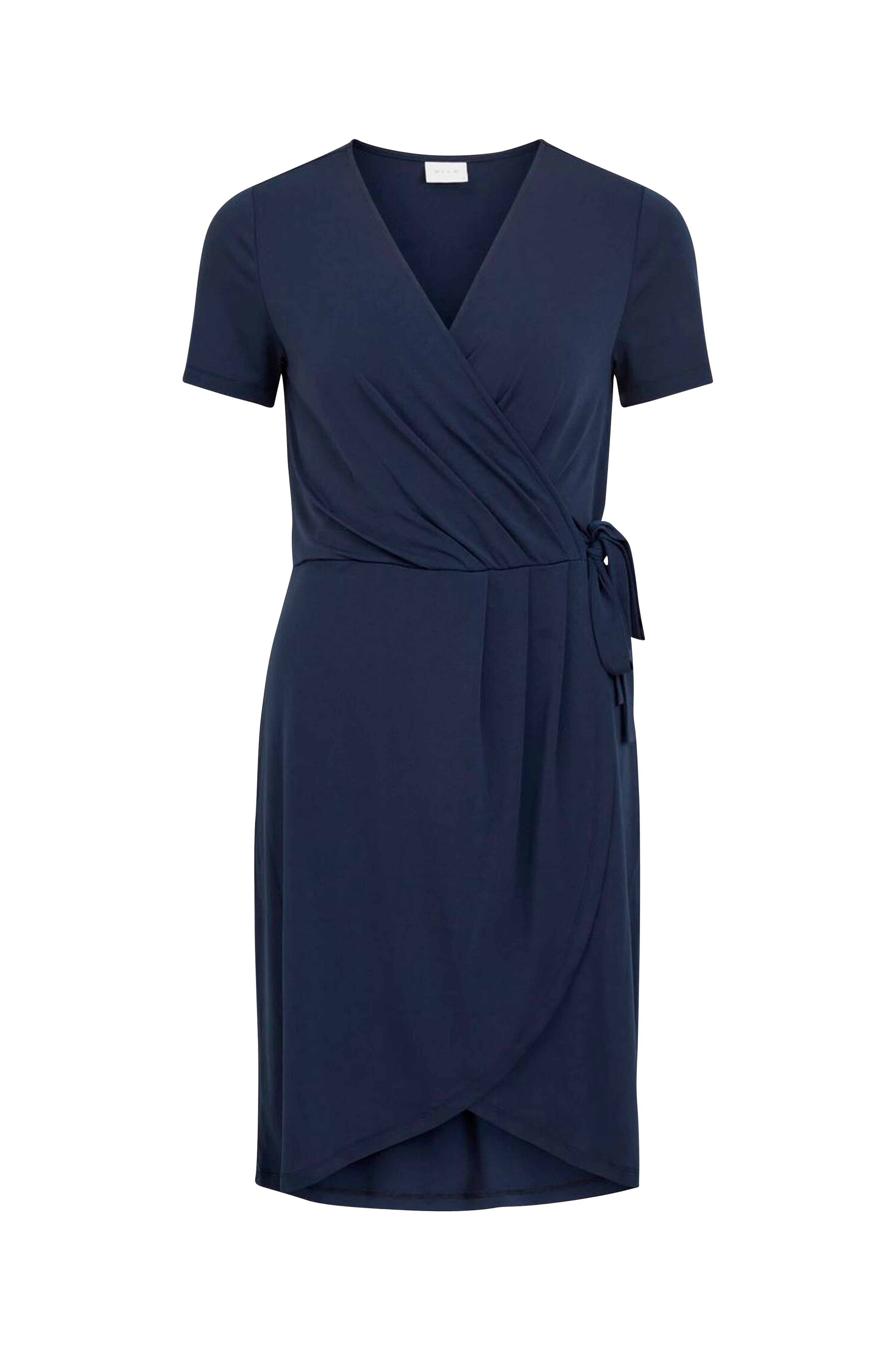 Kjole i trikot. Omslagsdesign med fast midje med lagte legg og knyting. Lengde ca. 97 cm i str S.