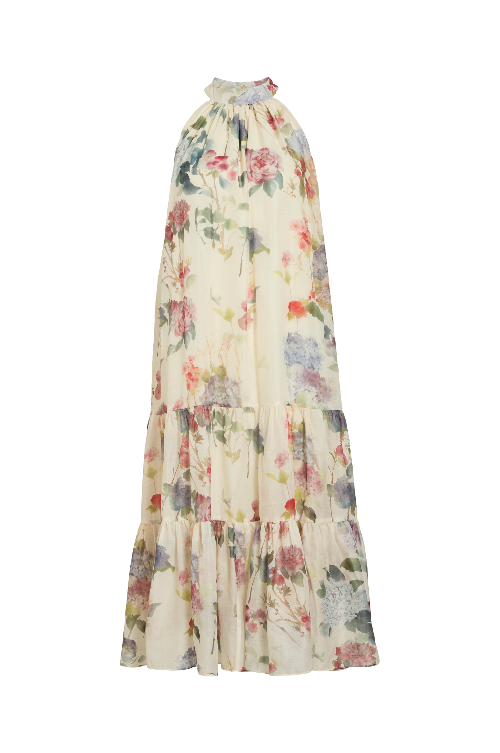 • Ermløs kjole med halterneck-design• Skjær med knapper i nakken• Tekstilfôr• Volang i nedre kant• Lengde: 127 cm i størrelse 36