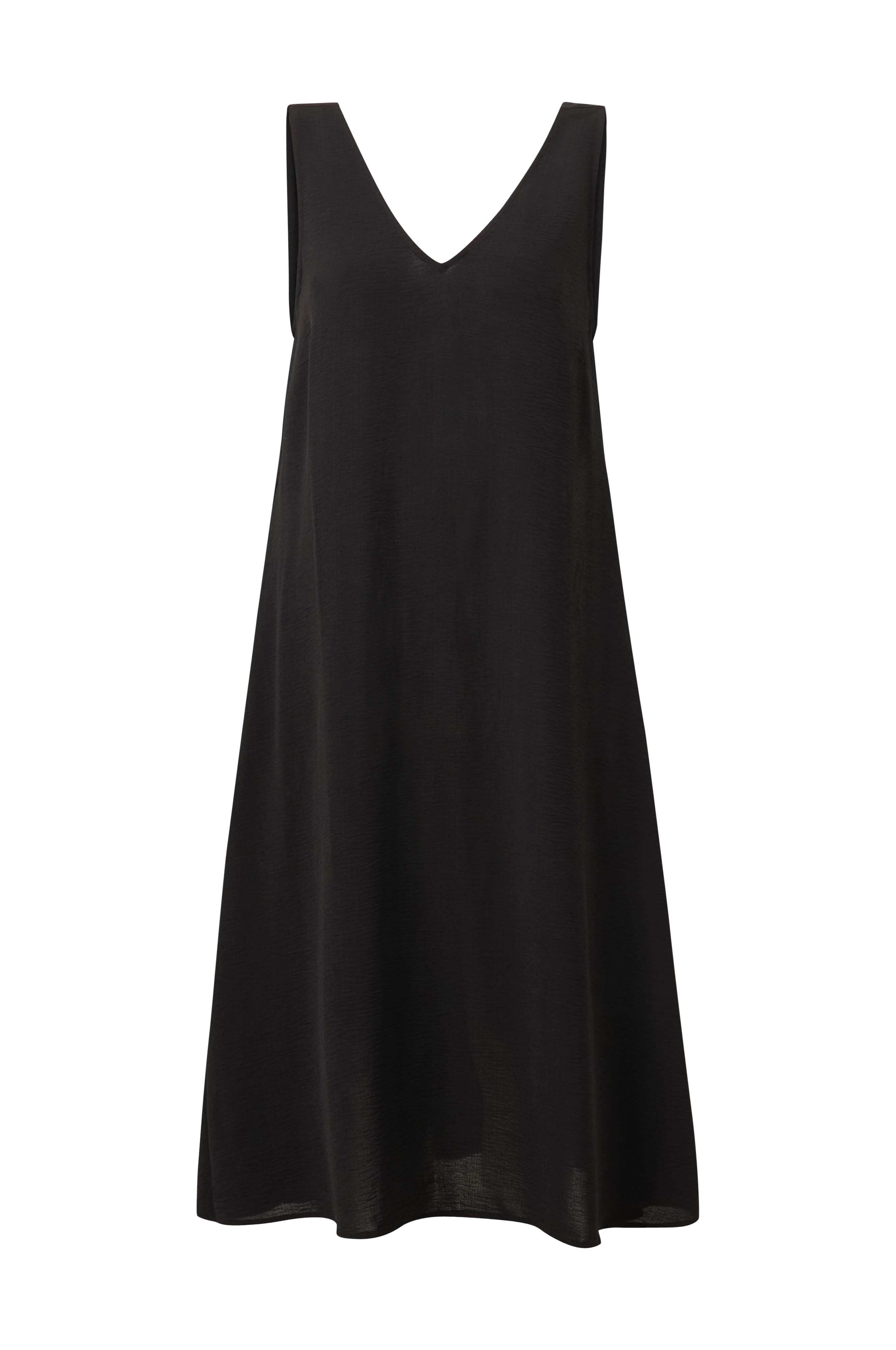 • Ermløs kjole• A-linjeform• V-hals snitt foran og bakpå• Lommer i sidene• Lengde: 114 cm i størrelse 36
