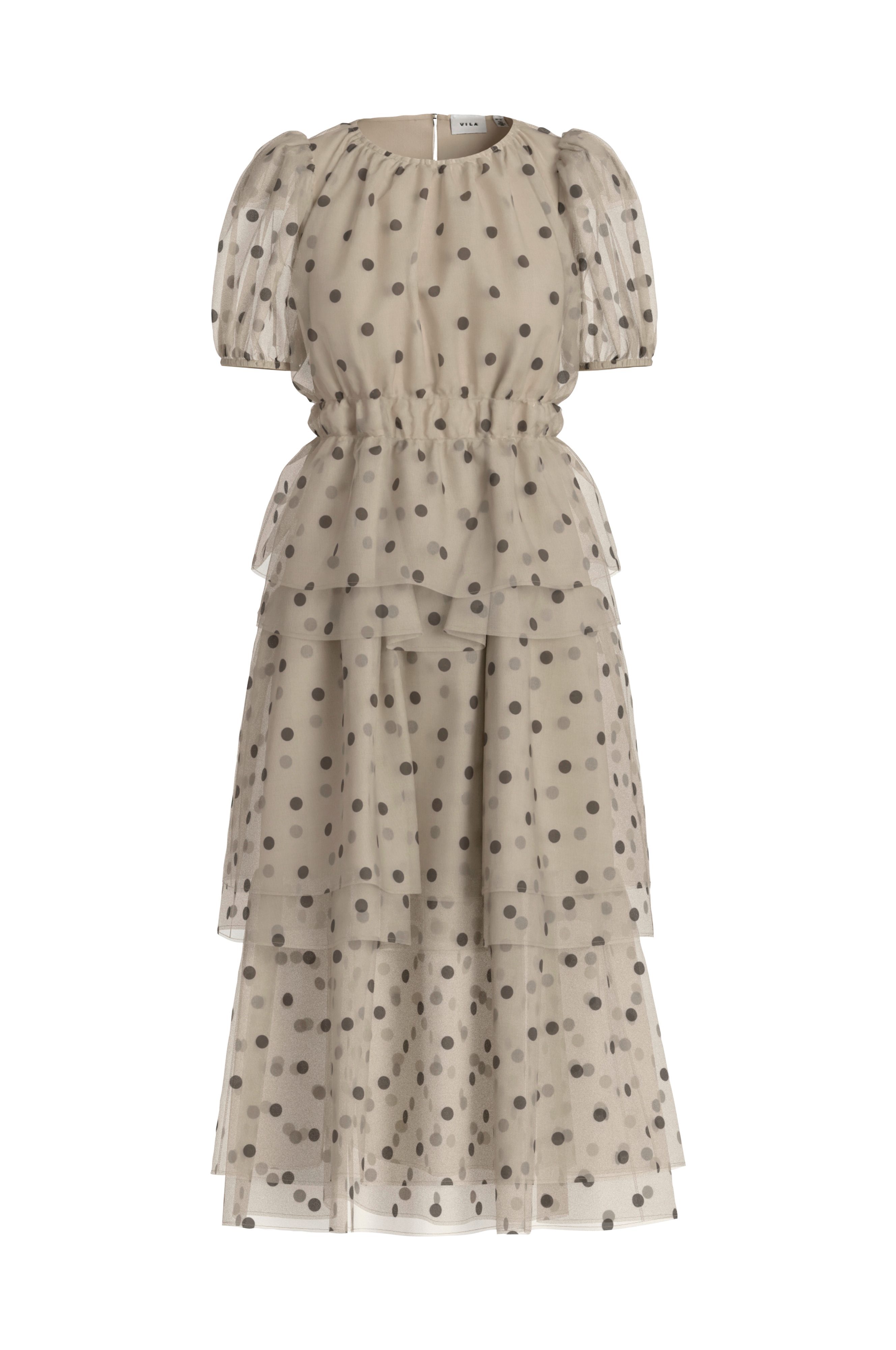 • Midikjole i organza med en polka prikken• Korte bobleermer• Skjær med knapp i nakken• Volangskjørt• Elastisk vaffelsøm ved midjen• Vevd foring• Lengde: 124 cm i størrelse 36