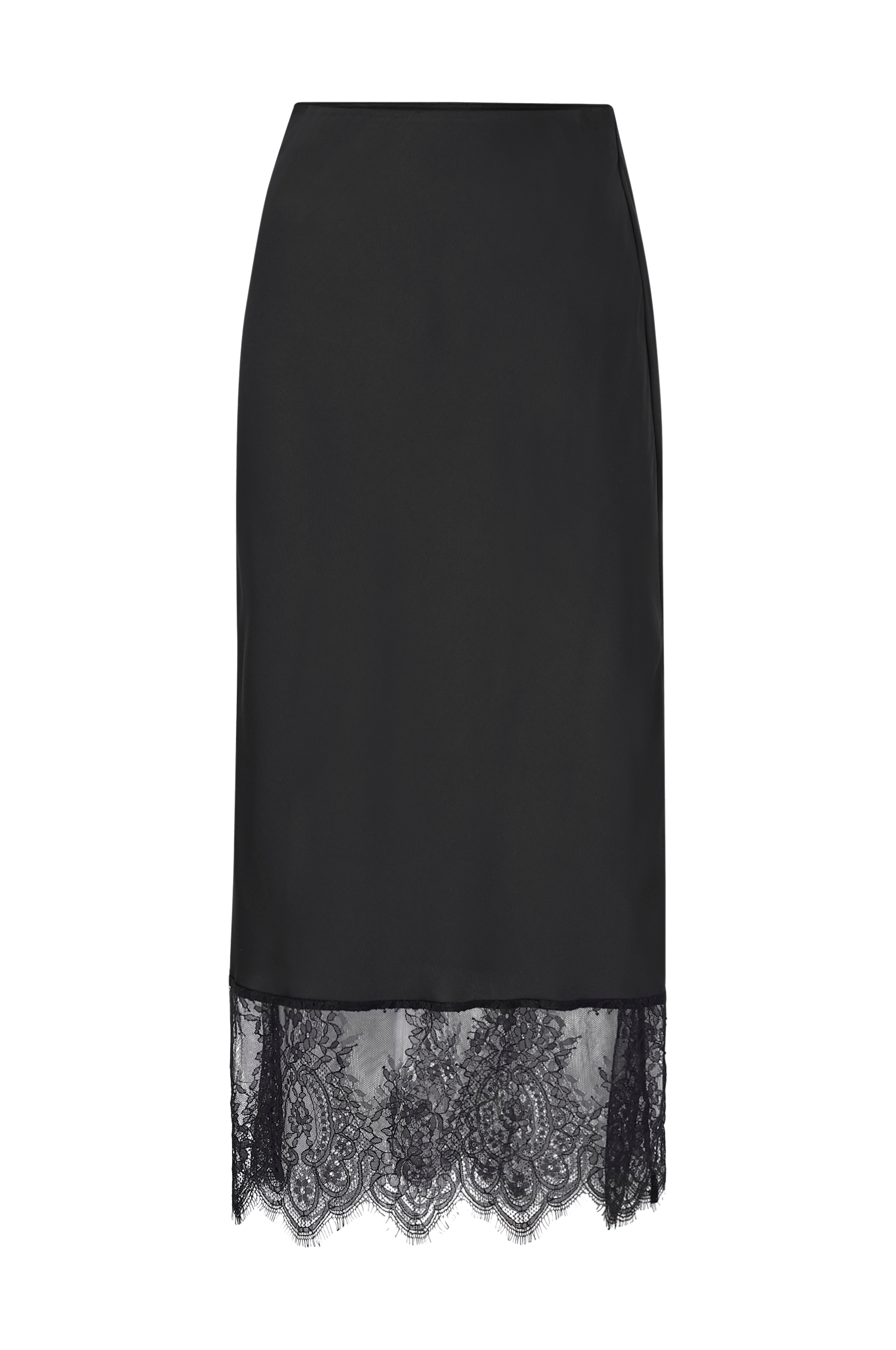 • Modell i sateng med brede blonder på bunnen• Innvendig gummistrikk på toppen• Lengde: 91 cm i størrelse 36