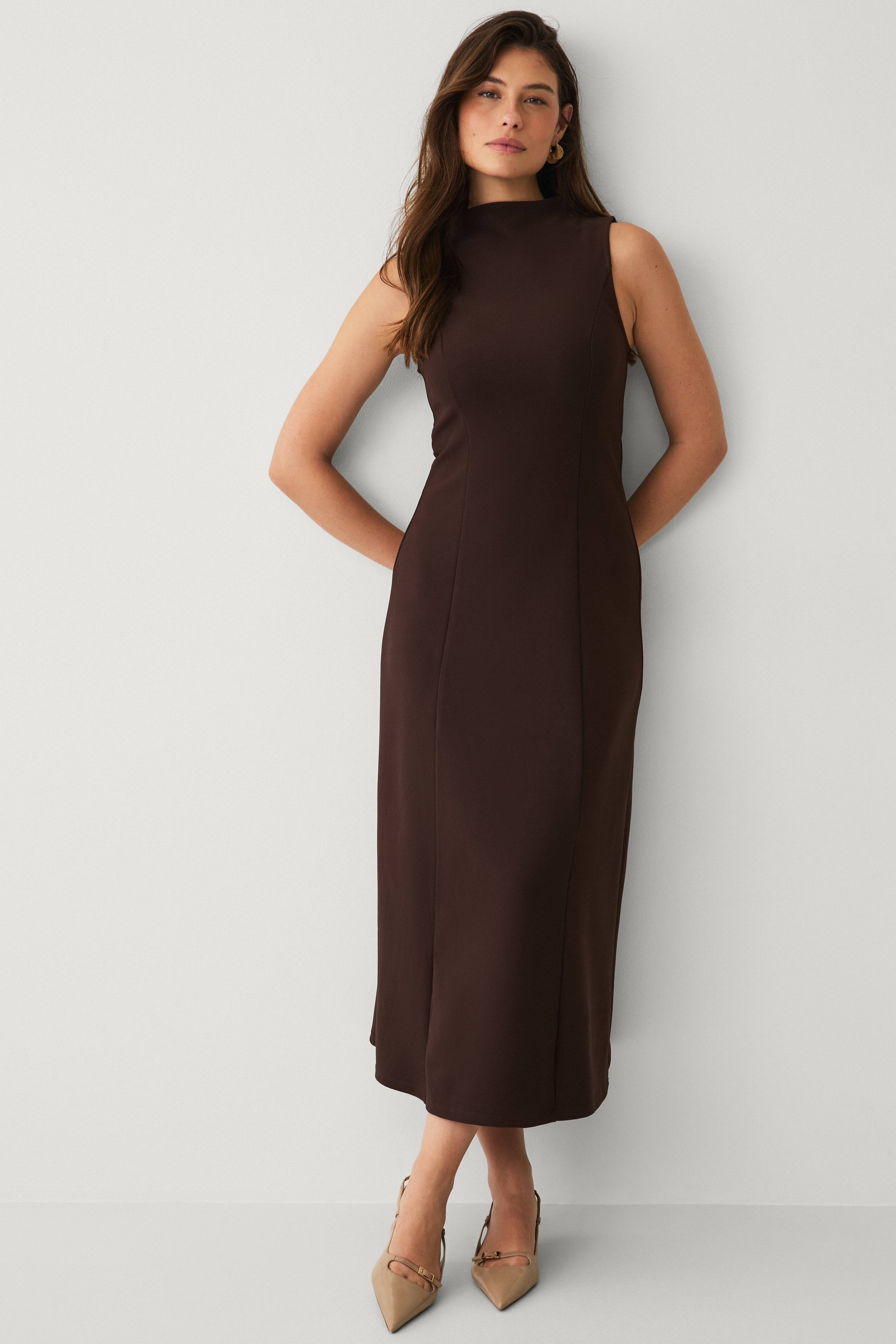 • Ermløs, lang kjole• Høy krage• Sømdetaljer• Smal passform• Lengde: 131 cm i størrelse S