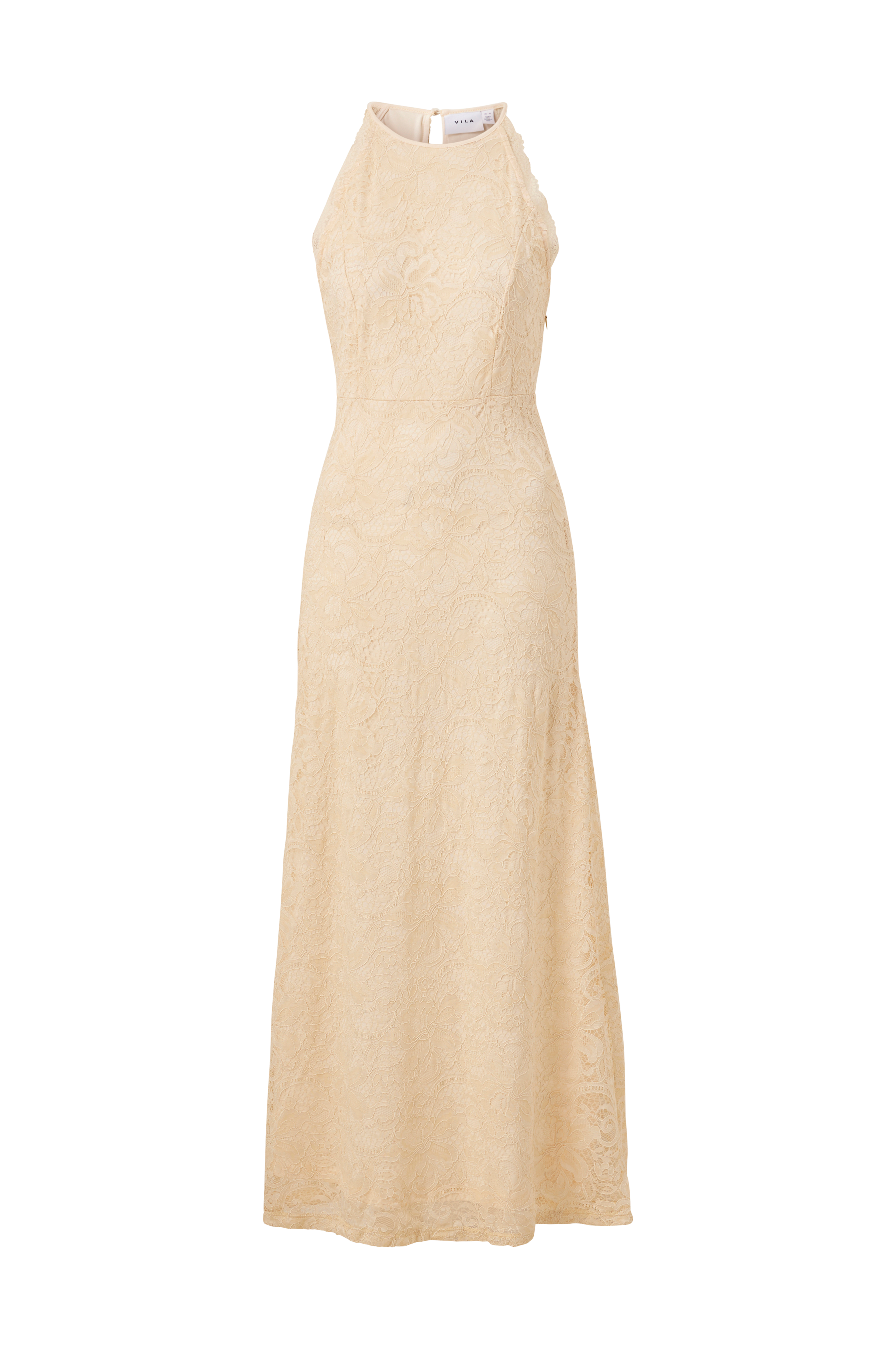 • Lang kjole i blonde• Halterneck-design• Splitt i ryggen• Knapp i nakken• Skjult glidelås i siden• Foring i jersey• Lengde: 140 cm i størrelse 36