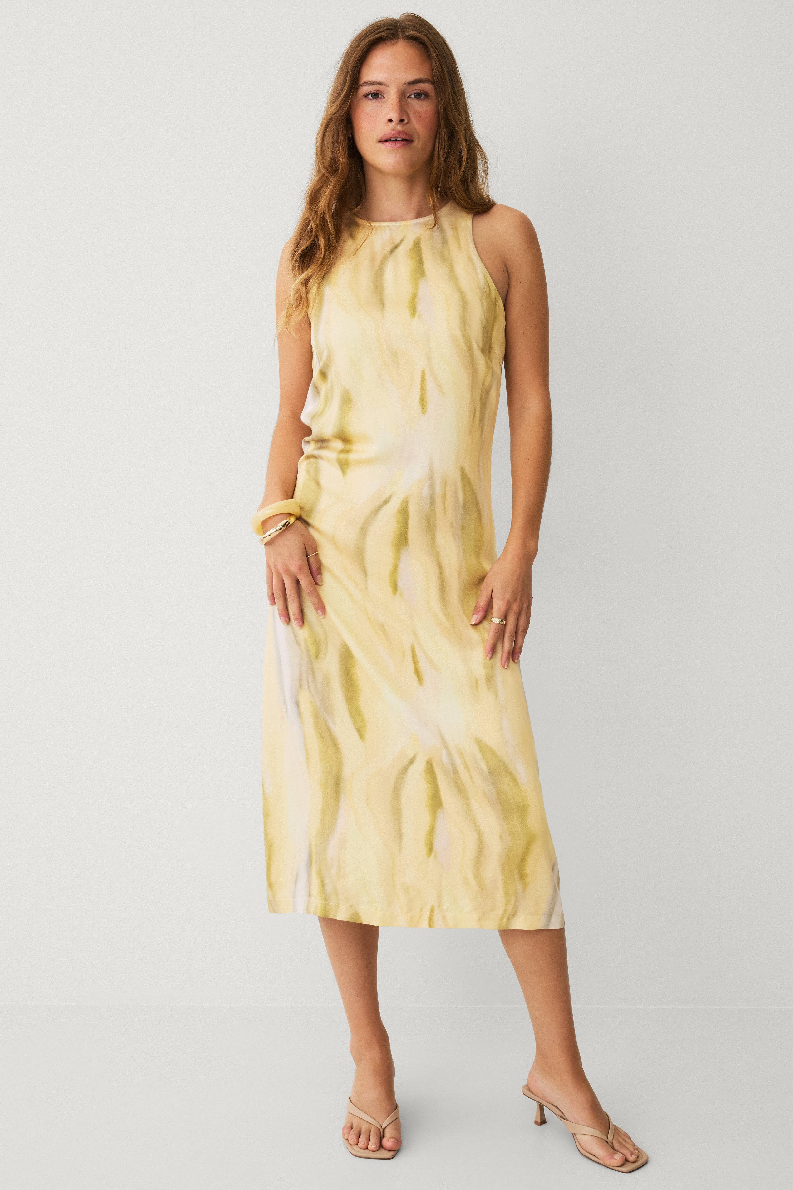 • Lang, ermløs kjole i viskose• Rund hals• Glidelås i nakken• Splitt nedover ryggen• Lengde: 130 cm i størrelse 36