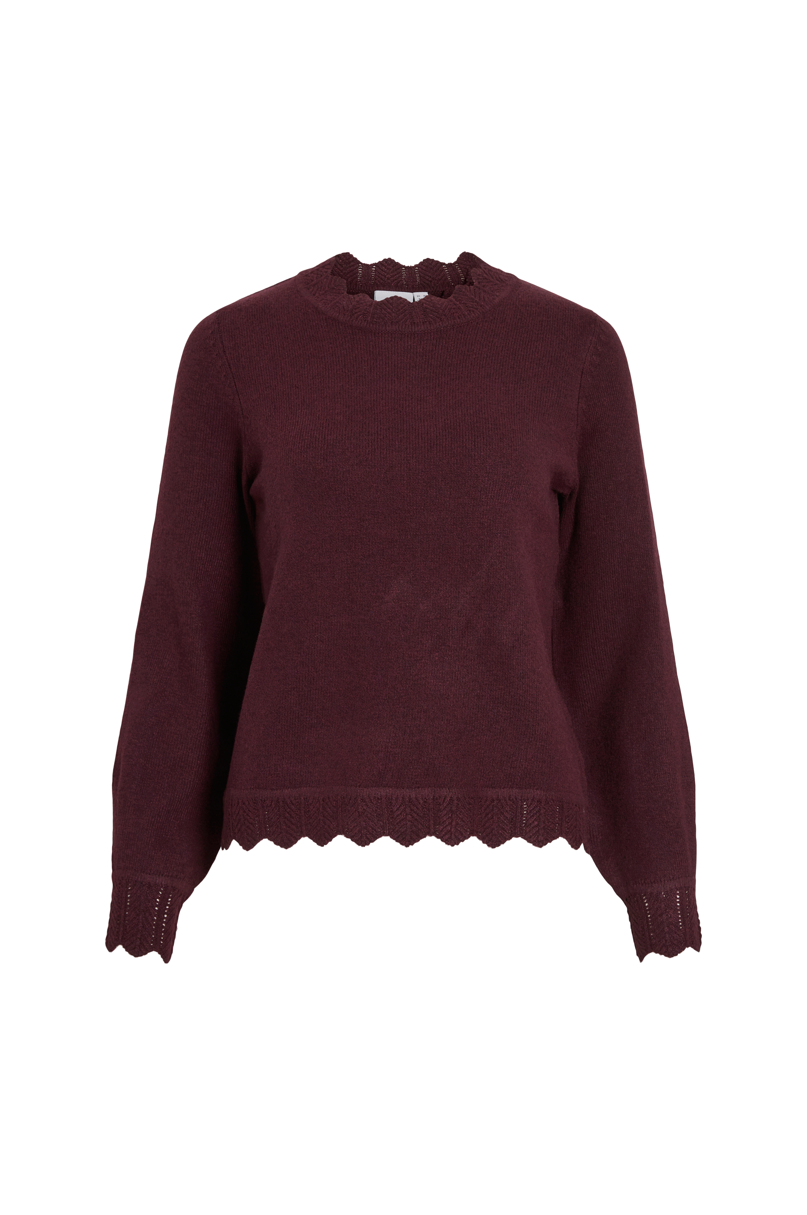 • Finstrikket pullover med lange ermer og krage• Mønsterstrikkede, bølgede kanter rundt halsen, i ermeslutten og på bunnen