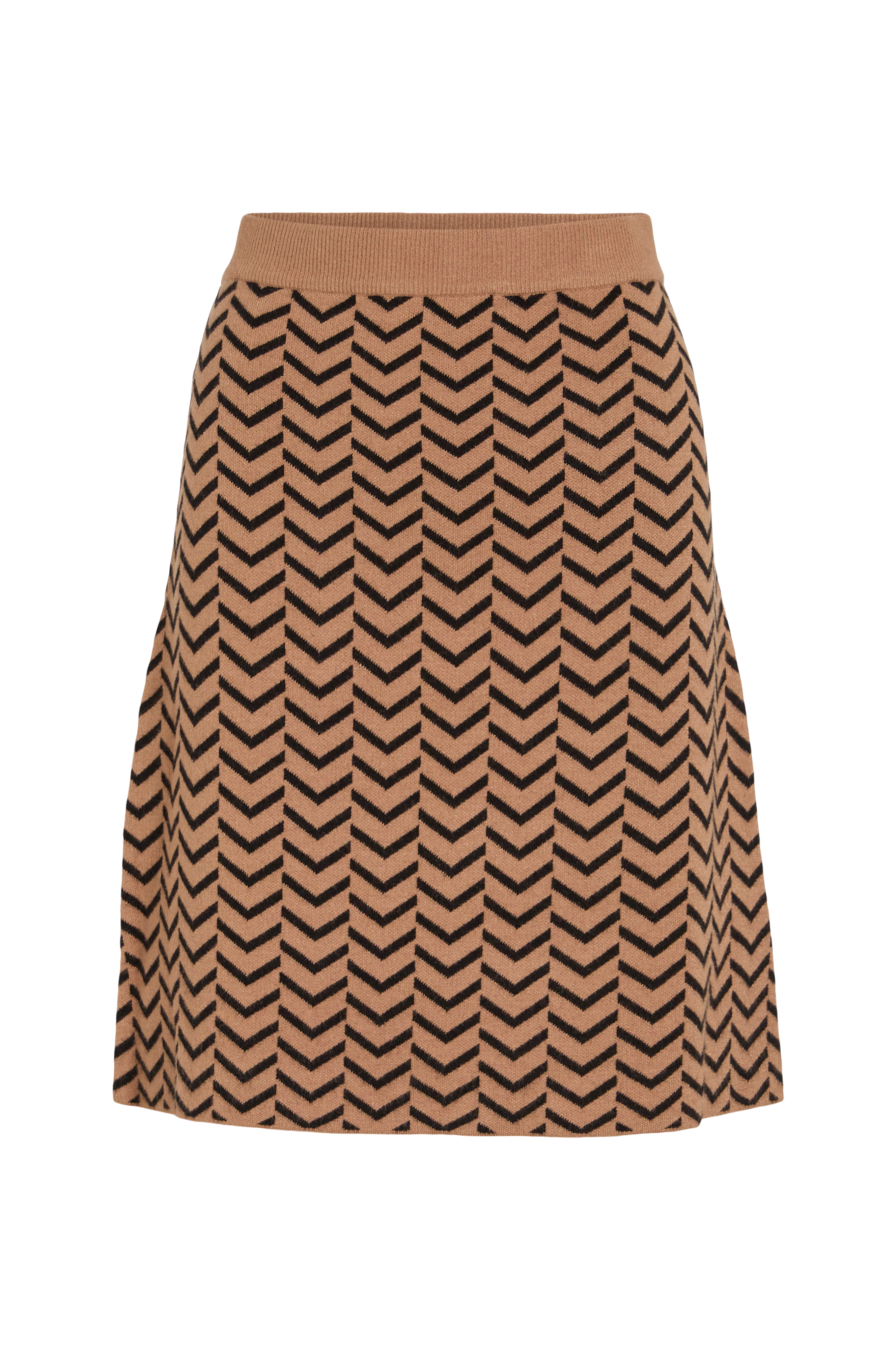 • Utsvingt, mønsterstrikket modell• Ribbestrikket linning med innvendig gummistrikk• Lengde: 55 cm i størrelse S